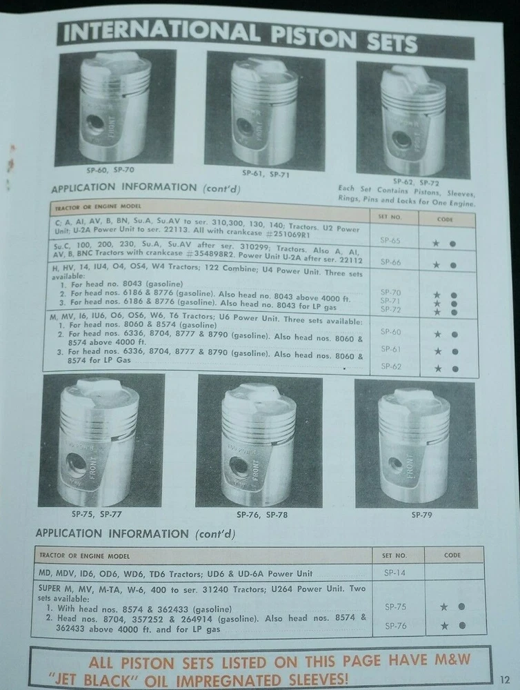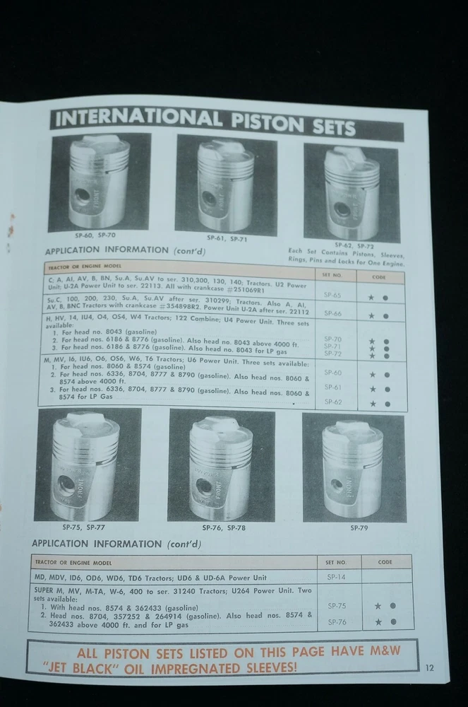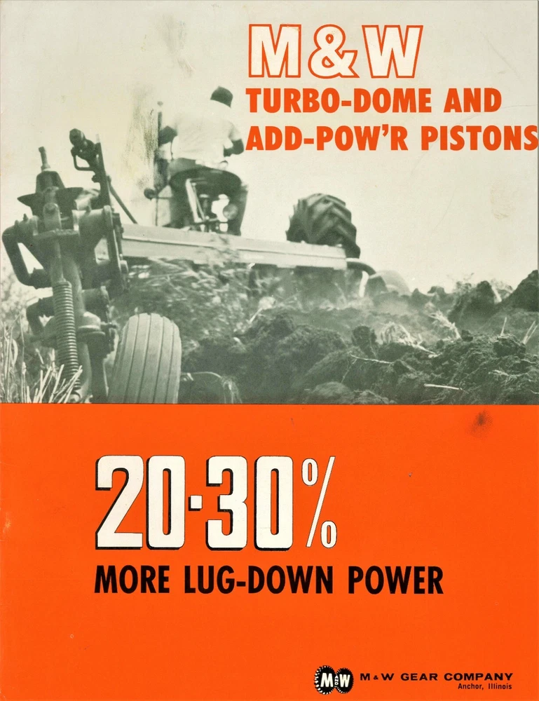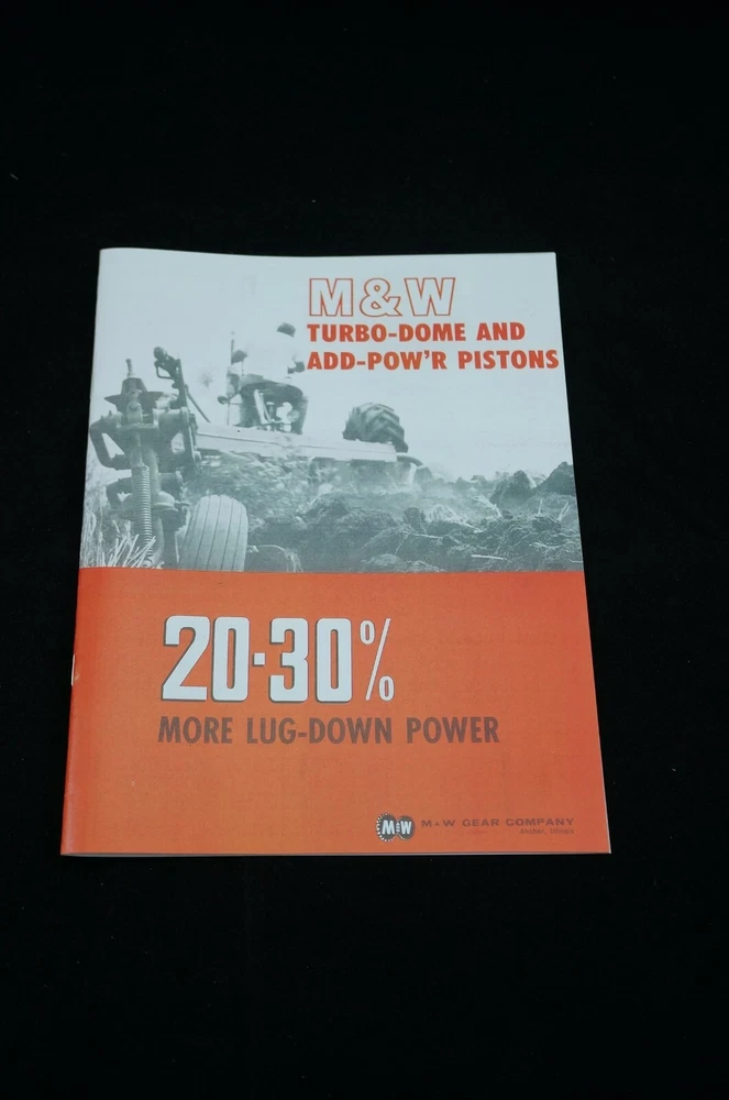 Reprint of M&W Gear Company Turbo-Dome and Add-Pow'r Tractor Pistons Dealer Type Brochure / Catalog Covers Specs and Part Numbers Index: * Allis Chalmers * Case * Cockshutt * Ferguson * Ford * Industrial * International * International - HI-T Kit * John Deere * Massey-Ferguson * Massey-Harris * Minneapolis-Moline * Oliver * Re-Ring Specification 21+ Pages Including Covers Real Paper Manual, Center Staple Binding Printed In USA Ships USPS First Class Package with Tracking