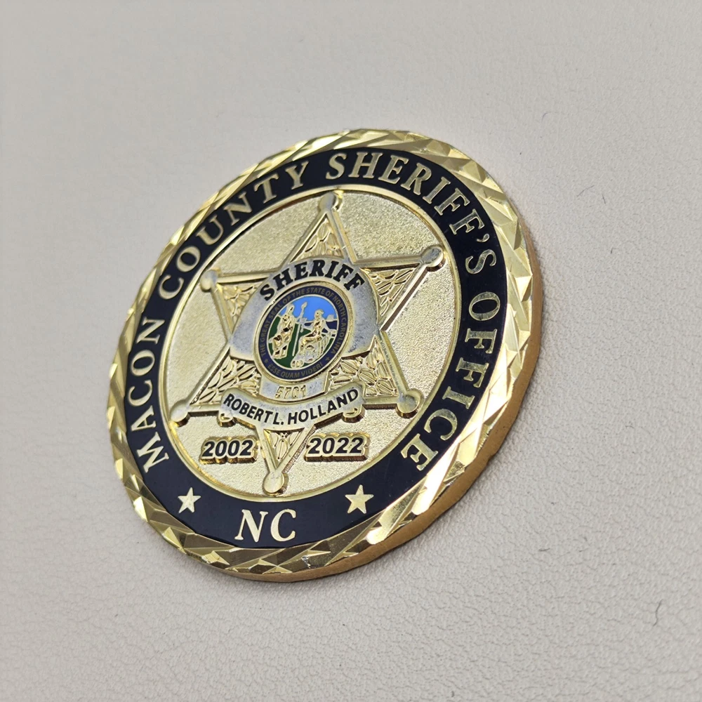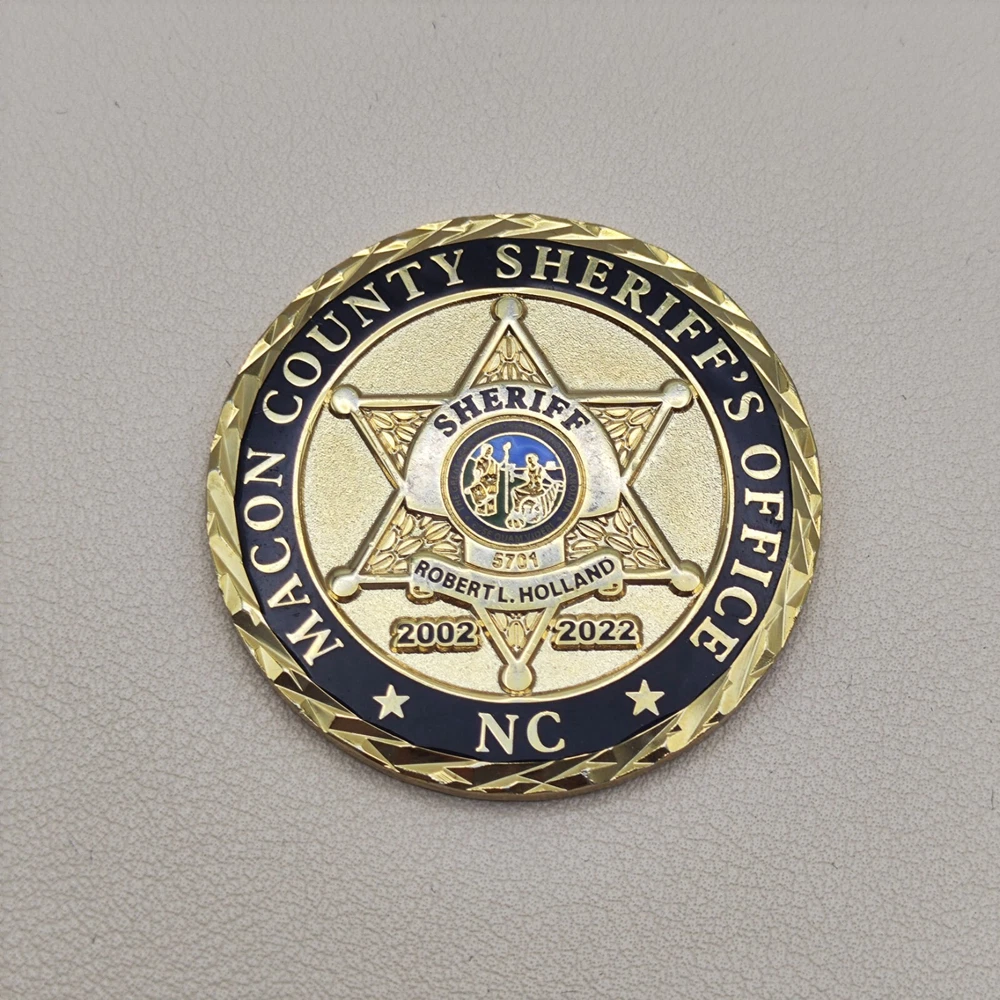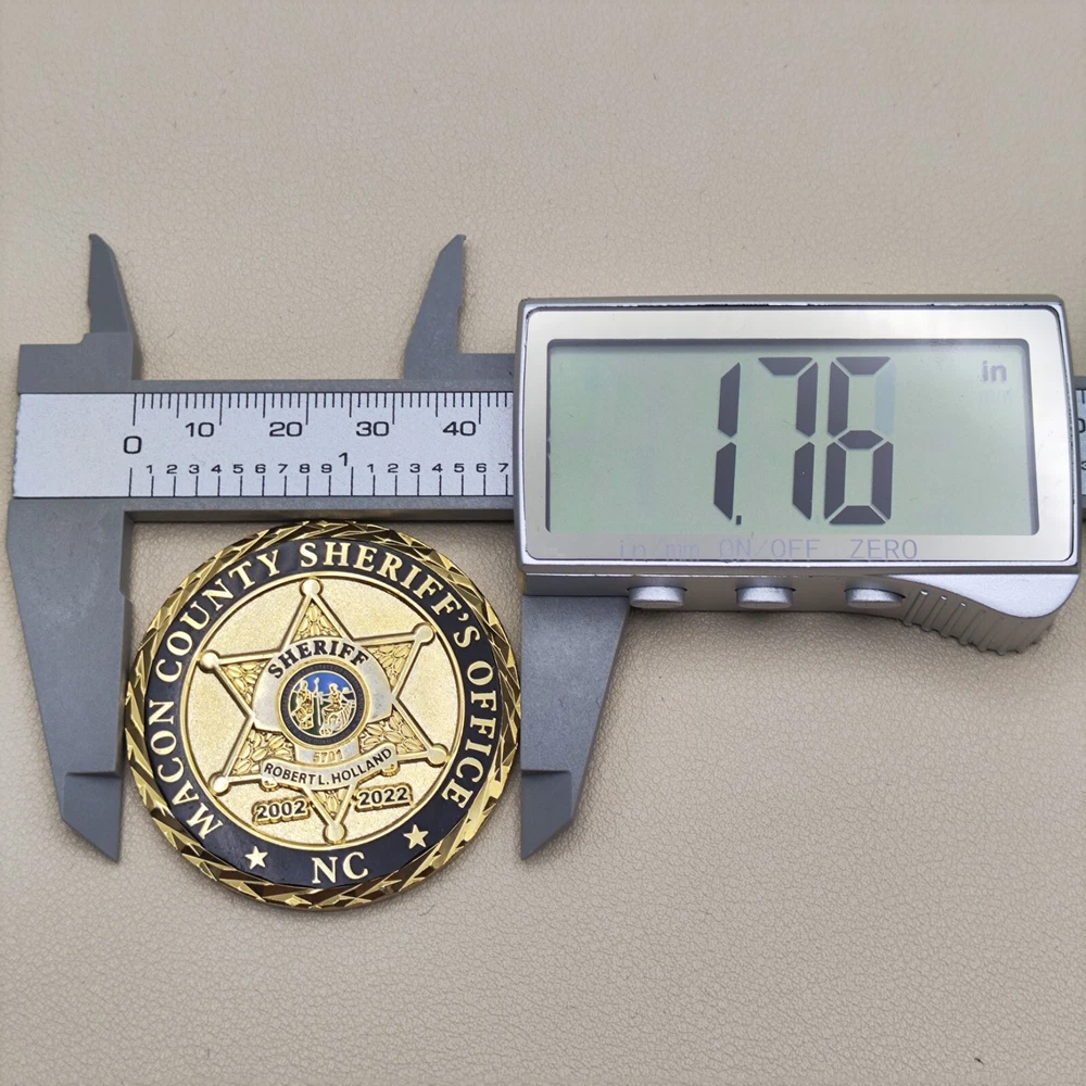 TITLE: Macon County North Carolina Sheriff Office Sheriff Challenge Coin SIZE : Measures Approx 1.76" Used coins are inevitably flawed please see pictures PAYMENT : We support multiple payment methods and ship within 5 days of payment SHIPPING : We offer free shipping, and your purchase will be carefully packaged and sent to you with tracking information through eBay SERVICES : You can contact us at any time if you have any questions, We will get back to you as soon as possible to solve your problem If you are not satisfied with your purchase for any reason, Please contact us before leaving neutral or negative feedback and we will solve the problem properly for you