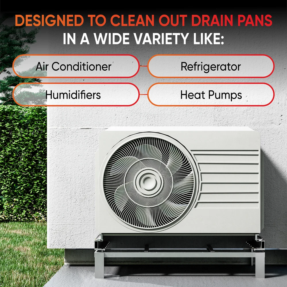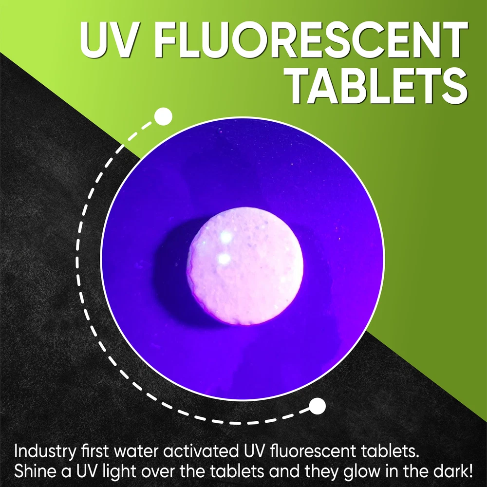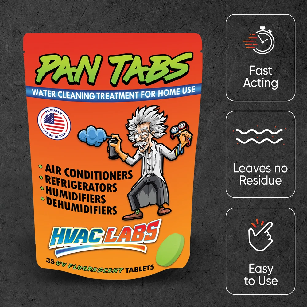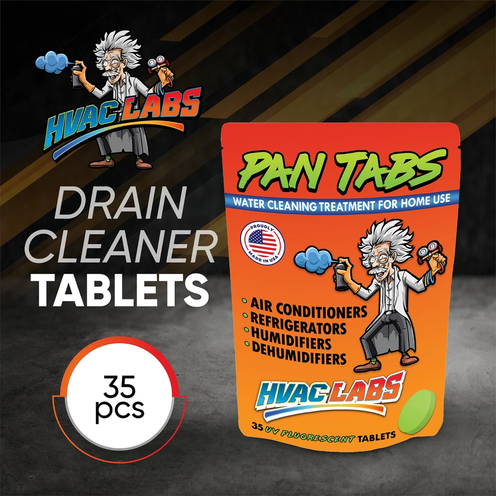 AC DRAIN LINE CLEANER TREATMENT: These tablets are designed to clean out drain pans in a wide variety of both air conditioning and refrigeration units. The tablet dissolves when the condensing moisture drips over them leaving a base of cleaning chemicals, ready for an occasional rinse for the best results for your A/C unit tray treatment. Safe, non-corrosive, non-toxic and biodegradable. 1 MONTH 1 TON / CONDENSATE NEUTRALIZER: Our AC and refrigerator cleaner tablets are designed to keep the drain pan of your unit cleaned and smelling fresh, with two to four tabs cleaning for a month per ton of technology. The tablets can also be cut to work with a small AC or fridge unit, rather than backlogging with multiple tablets. DRAIN ODOR & OVERFLOW ELIMINATOR: We make these tablets to work as a drain cleaner and deodorizer, leaving your drain pan smelling as clean as it looks. Nasty smells can ruin your experience with an air conditioner or fridge, so we make sure that these tablets eliminate all odors for your comfort. UV FLUORESCENT HVAC: Our tablets are made with an industry first water activated UV fluorescent component. Having trouble seeing your tablets in the dark? Simply shine a UV light over our tablets and it will illuminate a bright green color. Safe for all drip pans - Aluminum, Plastic, Metal, Flexible, Ductless split, Ceiling Mounted. MADE IN THE USA: Like all of our wacky products, our water tablets are made right here in the USA by our small, family-run business. From conception to delivery, every step is completed right here on US soil, stimulating industry in our country and following rigorous standard checks.