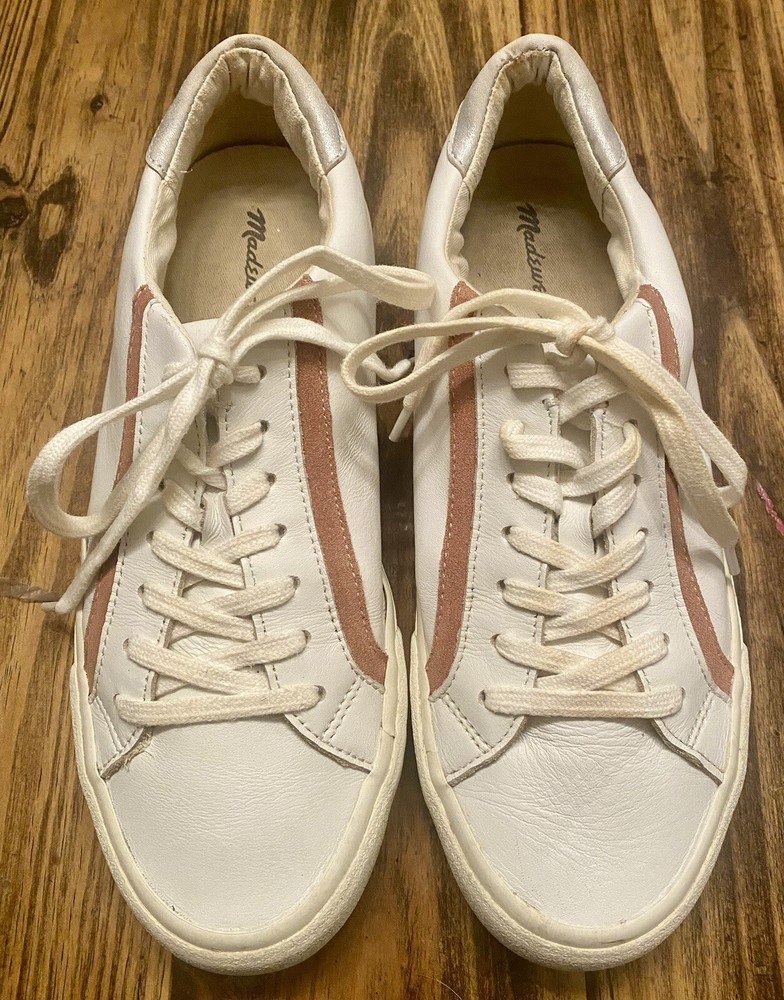 Madewell Delia Sidewalk Low Top Sneaker, White Leather, Womens 10 Mens 8.5. Condition is Pre-owned. Shipped with USPS Ground Advantage.