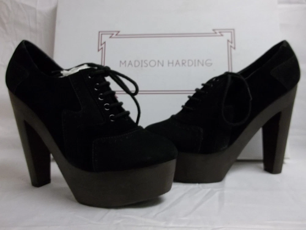 Madison Harding Size 6.5 M Geist Black Leather Booties Heels New Womens Shoes
