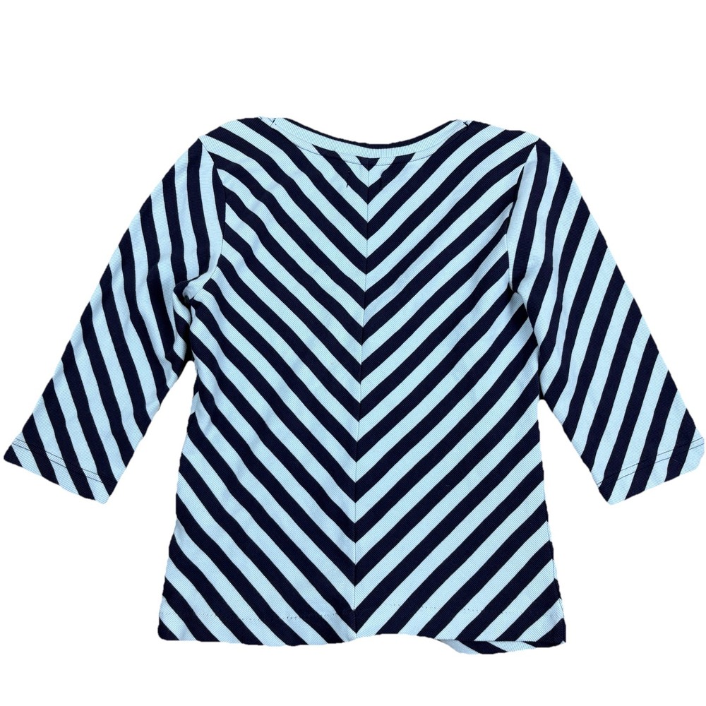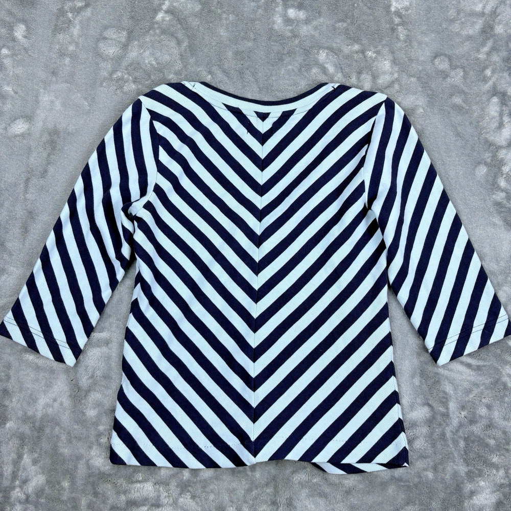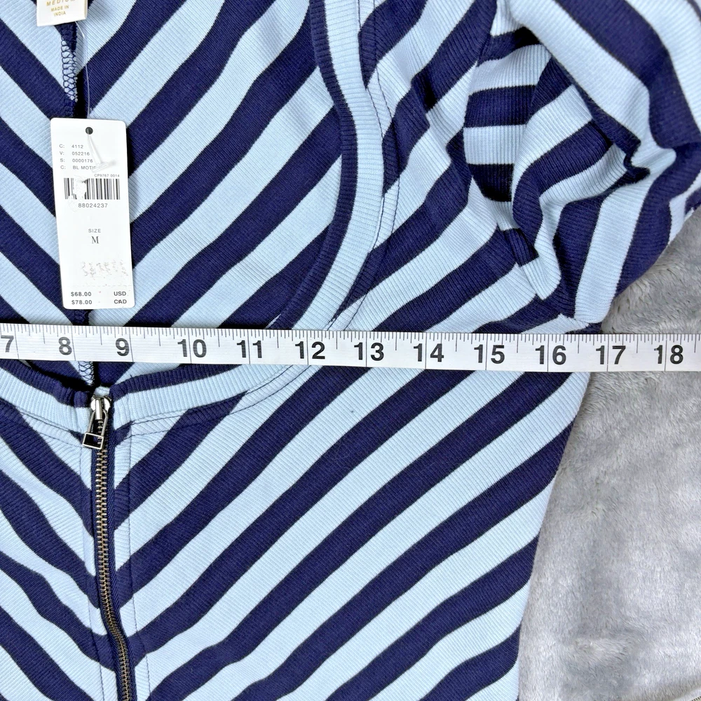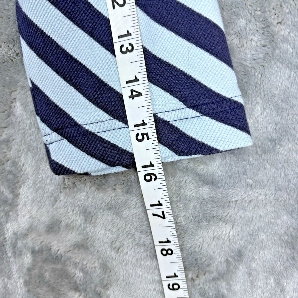 A crisp nautical aesthetic defines this Maeve by Anthropologie knit, with bold chevron striping and a front zip that gives it a modern, polished edge. Structured knit fabric offers comfortable stretch with a flattering shape Chevron stripe pattern creates visual slimming and directional interest Front zip neckline allows adjustable styling from casual to refined Three quarter sleeves balance coverage with an easy everyday wear feel Pairs effortlessly with white denim, tailored trousers, or a casual skirt New With Tags – Fabric retains original structure and finish throughout. Color may vary slightly due to lighting. Pit to pit flat 17 in Length shoulder to hem 23 in Sleeve 16 in All measurements are approximate and may differ slightly than tags. See photos. NoDealLeftBehind is proud to offer this piece. Questions always welcome. Follow NoDealLeftBehind for new finds and fresh listings added regularly. #nauticaltop #anthropologiestyle #chevrontop #zipfronttop #modernclassic nautical,preppy,modern Maeve Anthropologie zip front knit top chevron stripe womens medium nautical style
