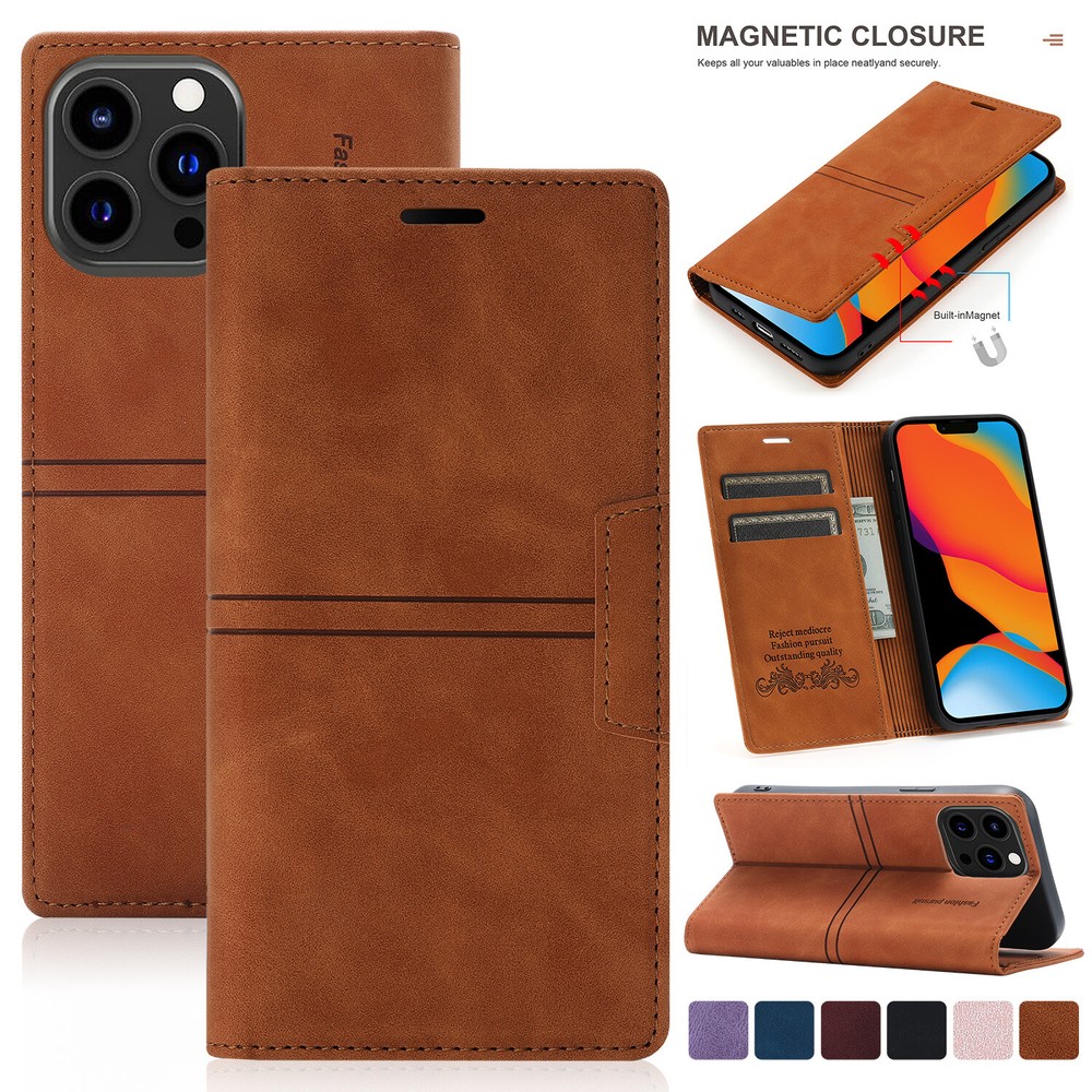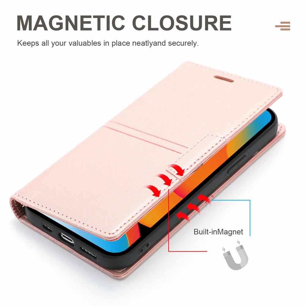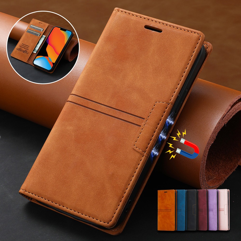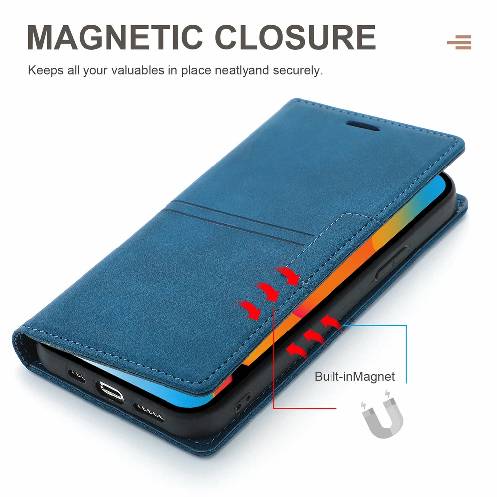 Magnetic Clasps Designed Leather Folio Wallet Case Flip Stand Card Holder Pocket Shockproof Phone Cover For New Apple iPhone 15 14 13 Pro Max 2021 12 Mini 11 Pro Note: Without Screen Protector Film, Please check your Correct Model !!! ( Any question about our items, please contact us firstly, we will reply within 24 hours, and give you the best solution, thanks in advance. ^_^ ) Features: - GENUINE LEATHER & FULL PROTECTION - 1. This leather cases are precision made of top layer cowhide leather. These hides are selected for quality, strength, character and grain. 2. Durable soft TPU full-body inner case comes with cushioned shockproof edge and ensures your phone against drops and bumps. Provides great dual-layer protection for your smart phone. - FOLIO CASE WITH CARD HOLDER - Wallet case design, you can hold 3 credit cards and some cash without any struggles. It is convenient to carry license/cards along with some cash everywhere you go. - MAGNETIC CLOSURE AND STANDING VIEW- The built-in magnet will ensure that the front part of the case doesn't open and protect your phone from dropping accidentally. (Magnetic not strong, no card will be better.) Kickstand function design, you can stand your phone in desk or landscape model without phone holder. - FULL-AROUND PROTECTON FOR PHONE- Inner shell material is made of soft TPU, providing all-around protection. Raised edges on the case back to protect the camera. Pay attention, inner shell can't be detached from the outer leather case. - CONVENIENT TO USE - 1. Hidden magnetic closure keeps all your valuables in place neatly and securely. 2. Invisible kickstand can be switched to a horizontal position and acted as a firm stand. 3. Precise cutouts for speaker, camera, flash and other functional ports, allow access to all ports and functions easily, without removing the case. 4. Carry-all design is suitable for everyday life and business trip Package Included: 1 * Magnetic Leather Wallet Case