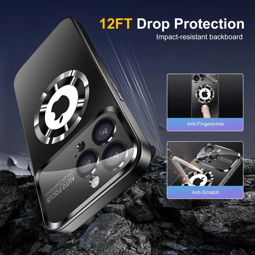 Magnetic for iPhone 13 Pro Max Case Magsafe with Full Camera Cover Lens Protector Logo View Scratch Resistant Frosted Slim Shockproof Protective Phone Case 【Strong Magnetic Strength】This for iPhone 13 Pro Max Case is built-in upgraded 3rd generation magnet ring,which is fully compatible with all MagSafe accessories and chargers from third party. Its strong magnets support automatically aligning and tight adsorption,you don't have to worry the phone fall off or shake from 【Reinforced Camera Protection】The full camera cover board is made from high-hardness plexiglass equiped with 8K HD tempered glass camera lens protector. It offers strong protection for camera lens but doesn't interfere with photoshooting. 【High Strength Back Board】The back board is made from high strength anti-glare polycarbonate,it's scratch resistant and impact resistant.It keeps in new condition overtime. 【Silky Touch & Tactile Buttons】The back board and soft bumper are specially treated with nano-oleophpbic coating which ensures for silky touch without fingerprints and stains left.All buttons are ergonomic designed for easy pressing just like original. 【Perfect Fit & Dustproof】This matte for iPhone 13 pro max phone case is perfectly compatible with screen protector. With a little raised lips wraps around screen edges,this case perfectly fits your phone with no interference to screen protector. Besides,the dustproof design for speakers can block 95% of stains and dust but free the sound as bare phone.