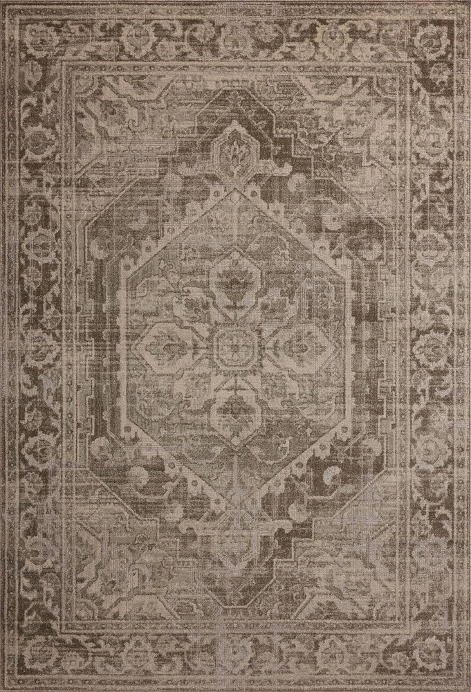 The Mona Collection by Magnolia Home by Joanna Gaines x is a power-loomed area rug with a framed design featuring traditional motifs and medallions in muted palettes. This collection is made of easy-to-care-for polypropylene and polyester in Egypt and OEKO-TEX® certified, ensuring its materials don't contain harmful substances. Polypropylene, Polyester Pile Area Rug Clean spills immediately by blotting with a clean sponge or cloth. Rinse with water from garden hose. Lift off ground to dry thoroughly. Appropriate rug pad is highly recommended on all surfaces to prevent slipping, add cushion, and improve durability. For vacuuming, use a vacuum cleaner without beater bar or one where you can set the bar to the highest pile setting. Vacuum full length of the rug, turn and repeat to the next area, rather than back and forth motion. Power Loomed Latex back
