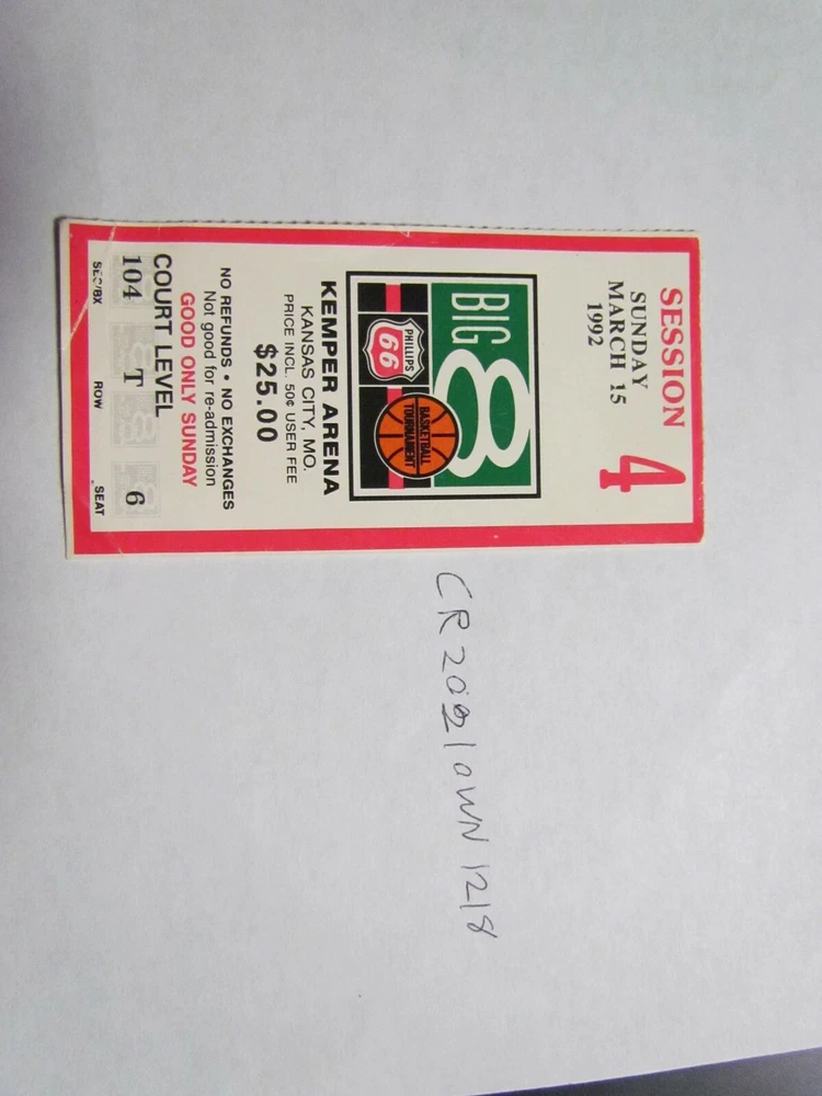 Up for auction March 15, 1992 Big 8 NCAA ticket stub E-mail with questions FREE SHIPPING