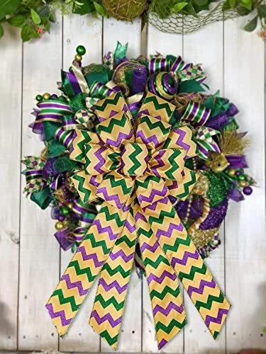 Menu 1. We require immediate payment. 2. We currently accept payment via eBay managed payments only. 3. Once payment is cleared, we will dispatch your shipment within 1-3 business days. Please refer to the "Shipping" tab for more information regarding shipping speed to your destination. Mardi Gras Wreath Bows, Purple Green Wave Stripes Mardi Gras Bows for Wreaths - Large Mardi Gras Decor Bow for Mardi Gras Carnival Home Garden Indoor Outdoor Decoration Wreath Ornament Supplies Product description ? High Quality Burlap ? Our Mardi Gras wreath bow is made of sturdy burlap. Soft to touch but durable enough to last. It holds up under all sorts of weather and extreme sunshine, and it will not fade or lost its shape, designed for long time use. ? Good Design Colors And Patterns ?: The wire edge ribbons ensure the appearance of the big carnival bow is full and easy to adjust its shape with your fingers in seconds. Each bow is pre-shaped with long flowy ribbons. Unique Marid Grass pattern design with purple green stripes background. ? Large Size Decor Bows For Wreath ?: This Mardi Gras glitter bow is 11.42" wide x 20.87" long and created with 13 loops. Large size to be an eye-catching Happy Mardi Gras decorative ornament. ? Wide Application ? Mardi Gras bows can be used to adorn the wreaths, carnival decoration, front door, outdoor mailbox, tree toppers, windows, wall, railings, fences, porch sign, large gifts, and more. ? Note ? The carnival tree topper bows may will be flat because of the method of packaging and folding, smooth them out before use to achieve the best use experience. PLEASE MESSAGE US IF YOU HAVE ANY OTHER QUESTIONS, AND MANY THANKS FOR READING ALL OF THIS. Copyright ©#. All Rights Reserved.
