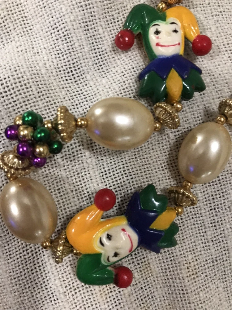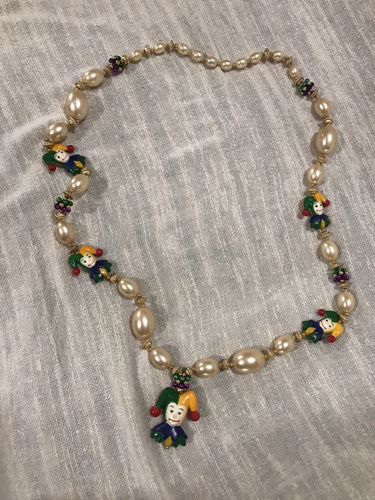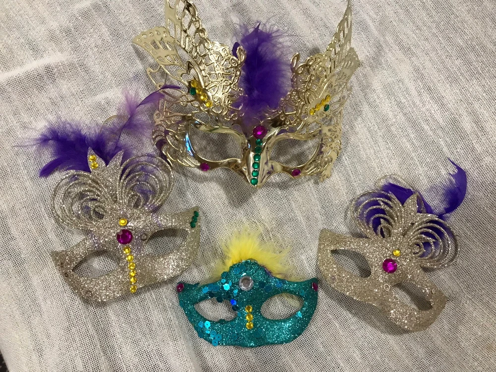 Get ready for Mardi Gras with this beautiful decoration set! The set includes a handcrafted mask and beads in vibrant colors, perfect for adding a festive touch to your home or costume. Whether you're celebrating the holiday with friends or attending a parade, this set is a must-have for any Mardi Gras enthusiast. The mask and beads are intricately designed with attention to detail, making them a true work of art. Add them to your collection of holiday decor or give them as a gift to a fellow Mardi Gras lover. With their stunning design and high-quality materials, they are sure to bring a touch of elegance to any occasion. Hand decorated masks.