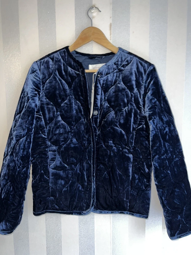 Quilted Velvet Chuck On Jacket | Per Una | M&S - Marks Pit to pit 18 inches length 23 inches