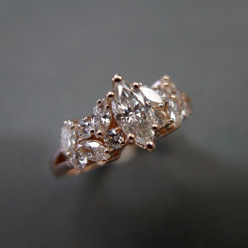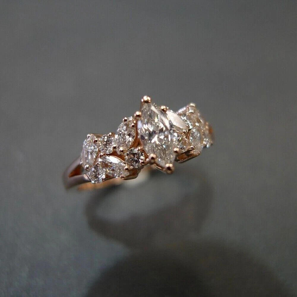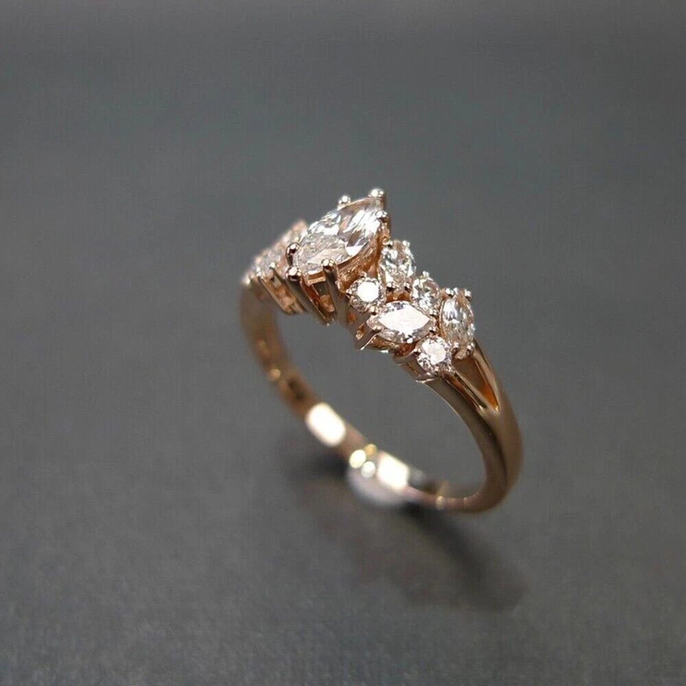 Type: Ring Main Stone Shape: Marquise Wholesale: Yes Theme: Beauty Antique: No Main Stone Color: White Features: Engraved Personalize: Yes Handmade: Yes Style: Band, Eternity Country/Region of Manufacture: India Base Metal: Rose Gold Plated Vintage: No Metal: Sterling Silver Setting Style: Prong UPC: Does Not Apply Metal Purity: 925 Color: Pink Seller Warranty: No Main Stone: Simulated Diamond Brand: sp_jewels Ring Size: All Size Available Sizable: Yes Secondary Stone: NA Material: Stone, metal Shape: Round Cut Grade: Excellent gtin13: Does Not Apply Seller Notes: ““Freshly made on order with quality and buyer satisfaction. No old stocks.”” Country of Origin: Unknown Occasion: Anniversary, Birthday, Christmas, Engagement, Father's Day, Graduation, Mother's Day, Valentine's Day, Wedding Number of Gemstones: 00 Main Stone Creation: Simulated