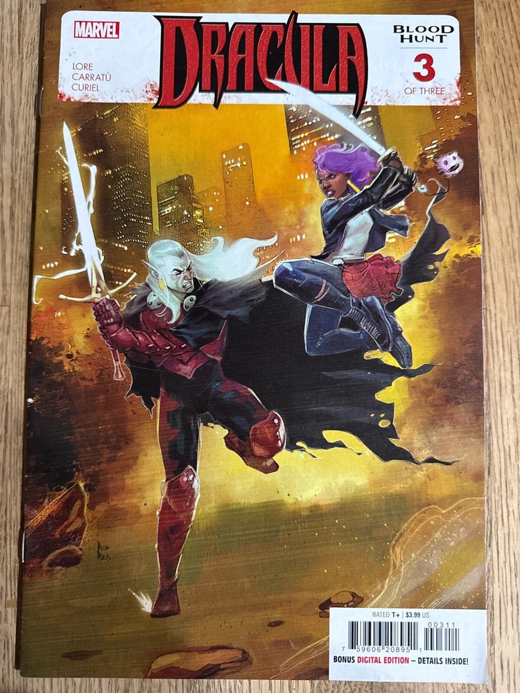 Marvel: Dracula: Blood Hunt #1. Issued: July 2024. Writers/Artists: Lore, Carat, Curiel. Marvel: Dracula: Blood Hunt #2. Issued: August 2024. Writers/Artists: Lore, Carat, Curiel. Marvel: Dracula: Blood Hunt #3. Issued: September 2024. Writers/Artists: Lore, Carat, Curiel. Marvel: What if? ....Dark Tomb of Dracula #1. Issued: January 2024. Writers/Artists: Wolfman, Cutler, Hanna, Fabela . These comic books were donated when new. They have never been in circulation. They are bagged and boarded. We will discount shipping of multiple items in a single package when possible. 100% of the proceeds from this purchase will support a non-profit library in Connecticut. See our other listings in store PBSales. ”