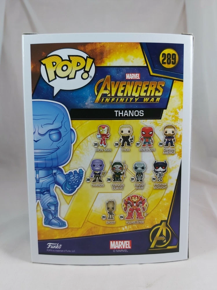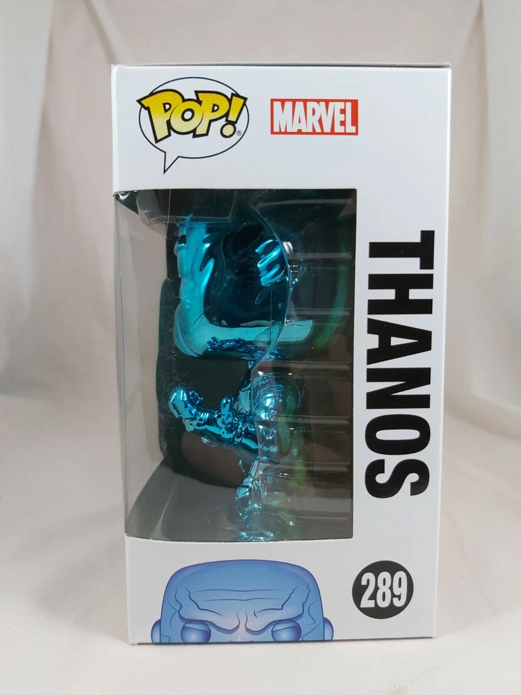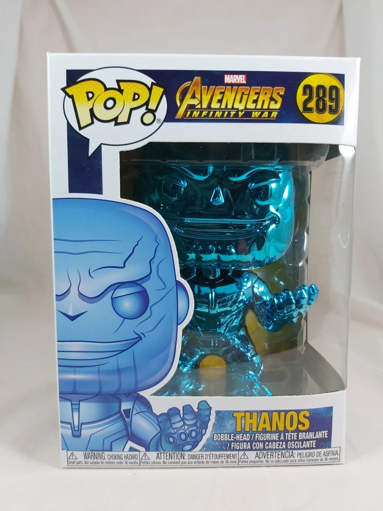 Up for sale is the Thanos (Blue Chrome) pop from the Avengers Infinity War line. This pop is in good condition with some minor box issues. Please check the photos are they form part of the description. Will be sent in a soft pop protector International postage is taking at least 40 days to arrive. Please do not purchase if you are unable or unwilling to wait that long.