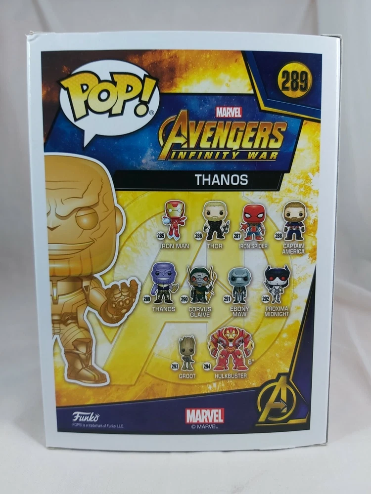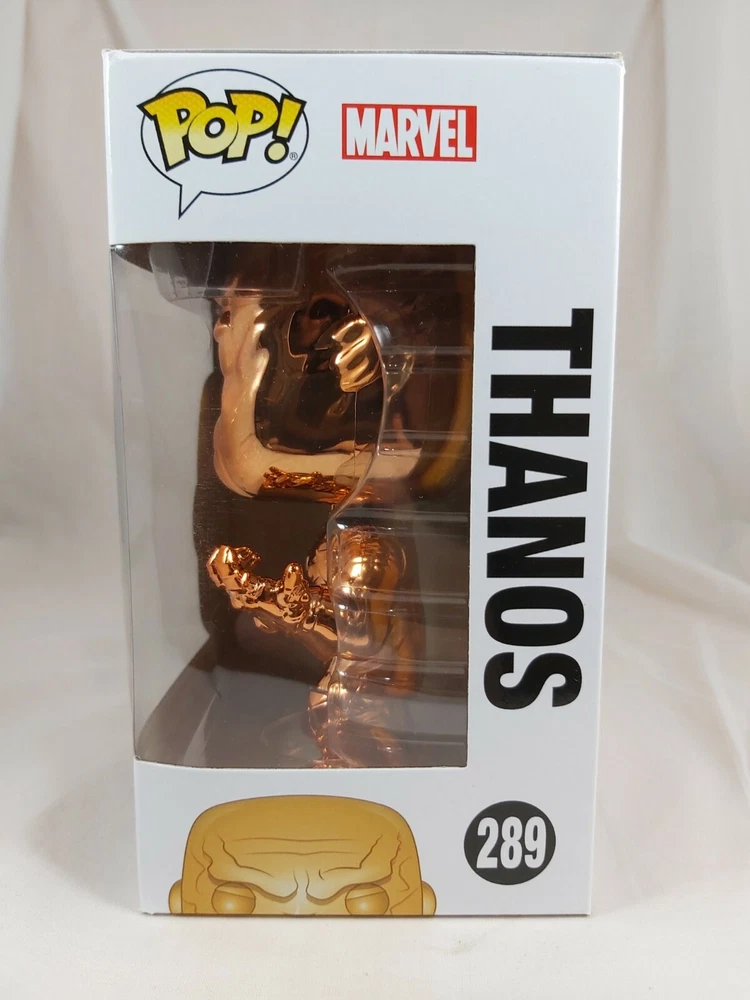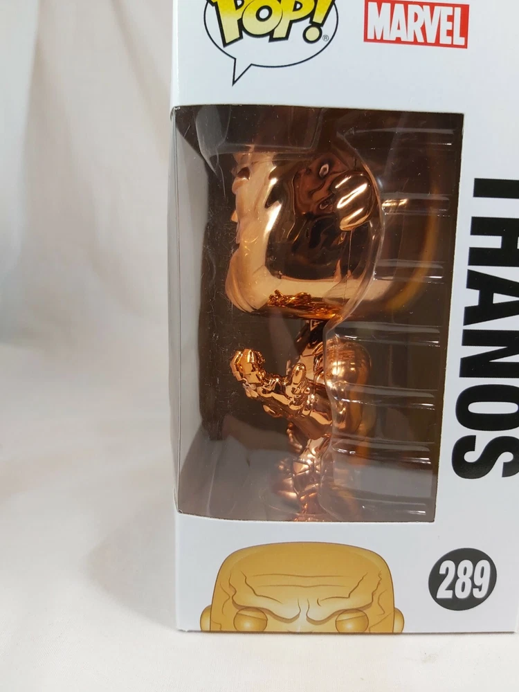 Up for sale is the Thanos (Orange Chrome) pop from the Avengers Infinity War line. This pop is in good condition with some minor box issues. Please check the photos are they form part of the description. Will be sent in a soft pop protector International postage is taking at least 40 days to arrive. Please do not purchase if you are unable or unwilling to wait that long.