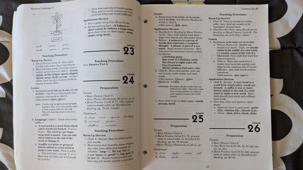 Complete lesson plans for three subjects. Phonics, spelling and reading. Very useful to pace yourself through the reading books. Well used. Also helpful to know what to teach in phonics.