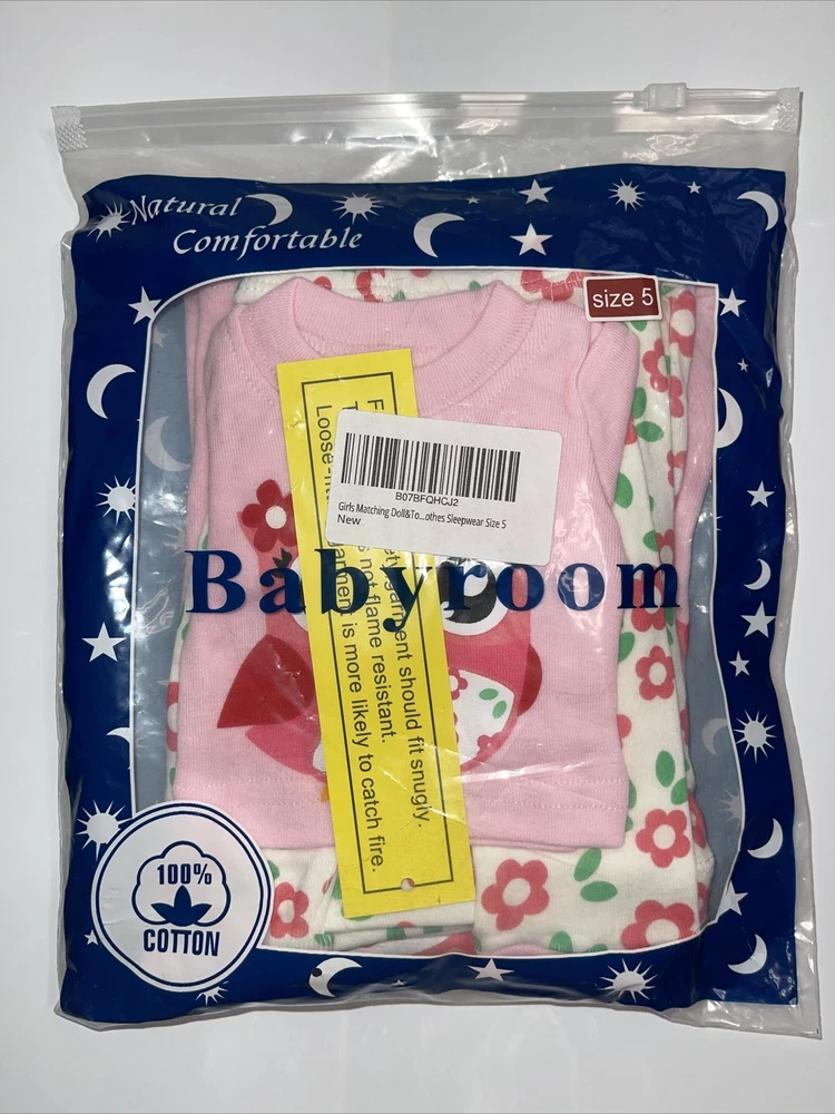 BRAND NEW with TAGS!! & In Company Sealed Packing! Color: Pink Owl Size: 5 *VERY FAST SAME DAY SHIPPING!!! ONLY LIMITED QUANTITY HURRY BEFORE IT’S GONE FOREVER!! More Details: 100% Cotton 100% Cotton,4-Piece Pajamas sets Machine Wash Warm, Inside Out. Tagless Label to help protect child's delicate skin For fire safety, These pajamas should fit snugly. Attention!! This type of pajama set is snug fit. Pls choose one or two size bigger.