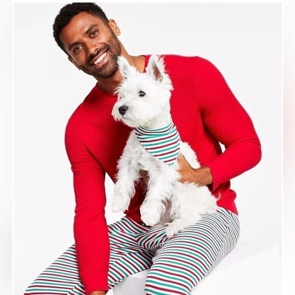 Product Details Holiday stripes bring festive fun to his pajama game in this supersoft thermal set from Family Pajamas. Texture: Thermal Waffle fabric Top: hits at hip; waffle-knit fabric; scoop neckline; pullover styling; long sleeves Bottom: hits at ankle; approx. inseam: 30-1/2"; waffle-knit fabric; elastic waist Search 'Family Pajamas Holiday Stripe' to see matching styles for the whole family Polyester/rayon Machine washable Imported