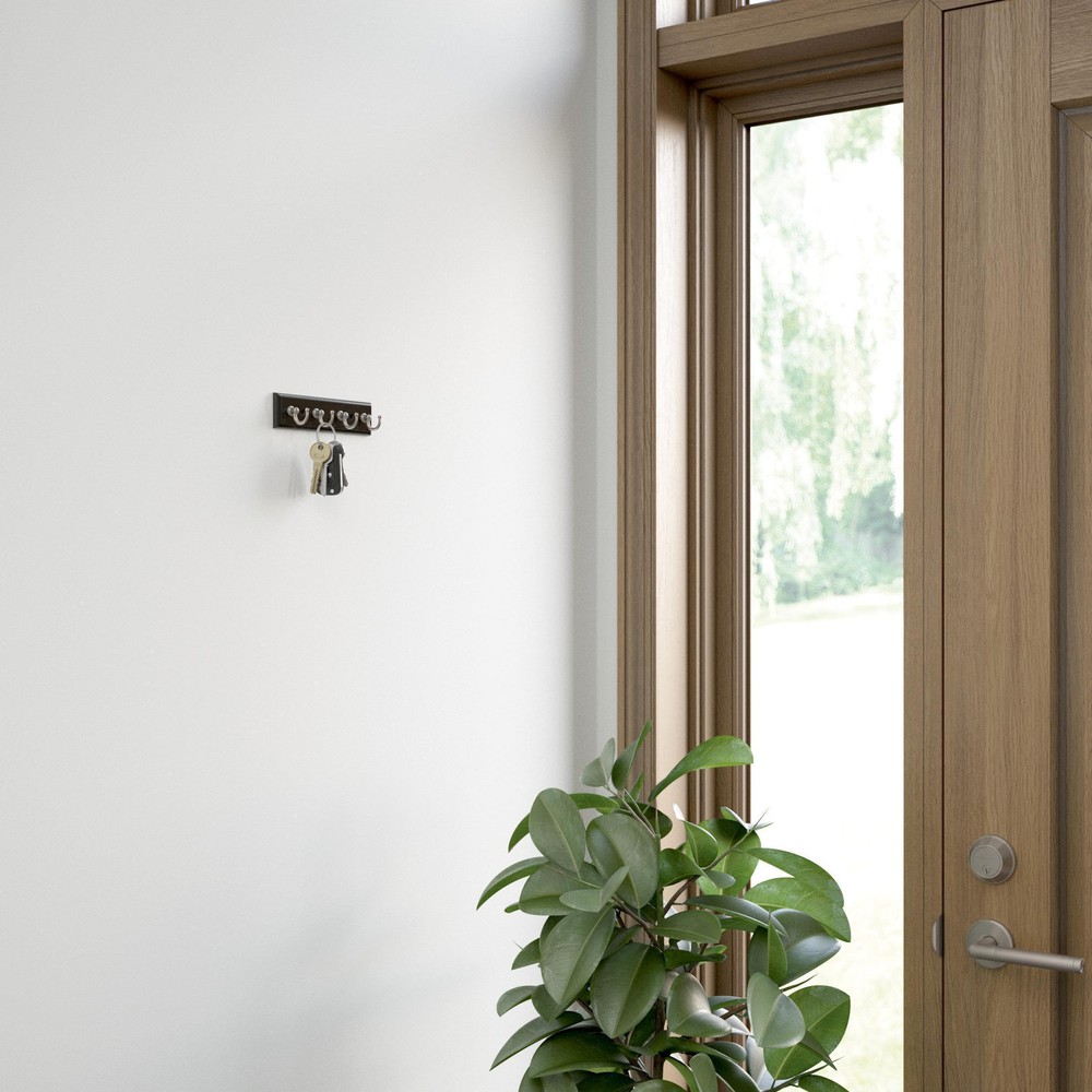 This 7 inch decorative key rail features 4 handsome hooks in matte nickel against a modern matte black backing. Hook rails pack a lot of storage in a wall-mounted solution that adds to your home’s ambiance. The casual rail coordinates with many home decors and keeps things tidy in your foyer, bedrooms, or bathrooms. REIN IN THE CHAOS: Keep small items organized so you can find what you need – ideal for office, entry, kitchen, and bedrooms DIMENSIONS: Key rack measures 6.70"L x 1.65"H x 1.49"D FINISH: Striking matte black rack with subtle matte nickel hooks offers a classic warmth to your space DURABLE: Strong fiberboard rail supports key hooks COORDINATE: This casual design creates a laid-back charm to your room LITTLE BUT MIGHTY: Weight capacity is 5 lbs. (or a 2-liter bottle of soda) when mounted properly : Feel secure in your purchase with our Limited INSTALL: Includes mounting hardware and installation instructions for accurate mounting the first time