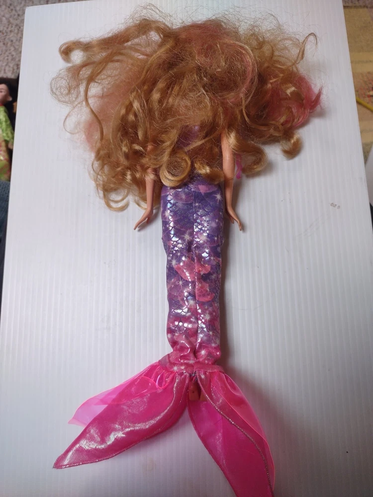 Introducing the Mattel Barbie & the Secret Door Transforming Mermaid Princess Romy Minty doll, perfect for all occasions! This 11.5" fashion doll features light red hair and brown eyes, with a varying hair type and a Caucasian complexion. The doll is an original, retired piece from the 2000-2009 time period and comes without packaging. The doll is a single unit and is not handmade. It is made of plastic and features a girl doll gender, with no personalization or custom bundle. The set includes the doll and is perfect for collectors or children aged 6+. Get ready to transform your own mermaid princess with this original favorites character family! See pics