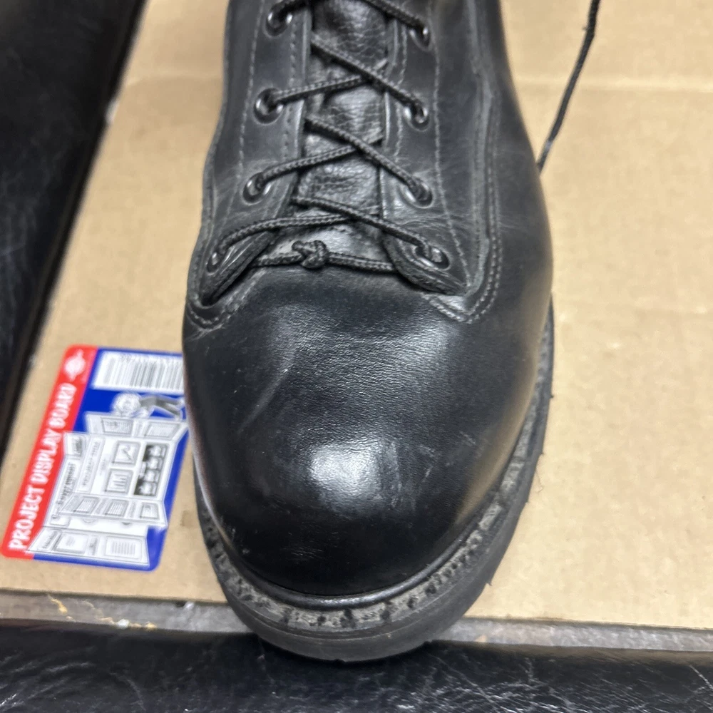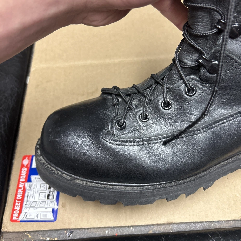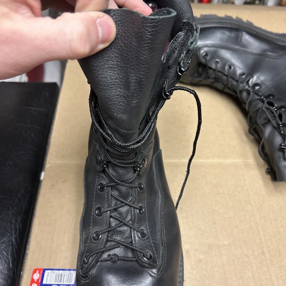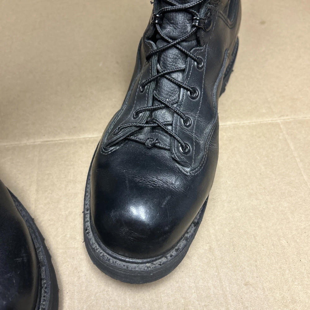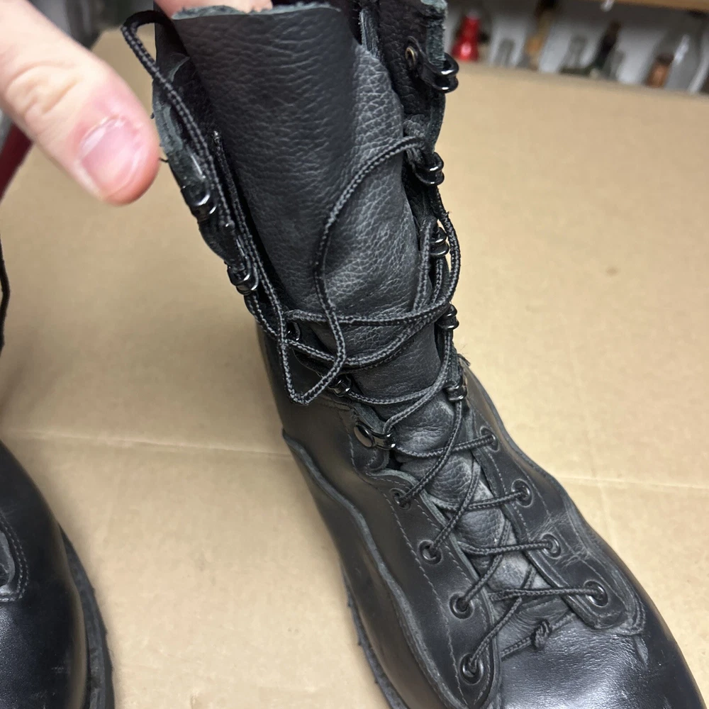 The boots have some marks and signs of wear to them. The laces have some wear to them. There is some indentation in some places. See pictures to see the item.