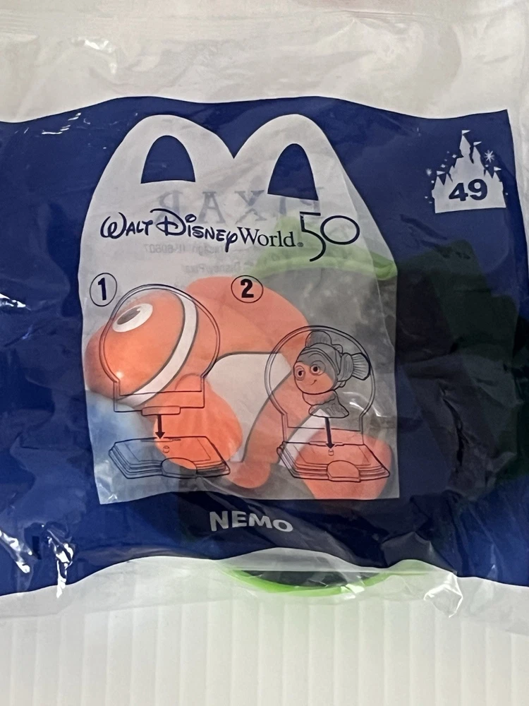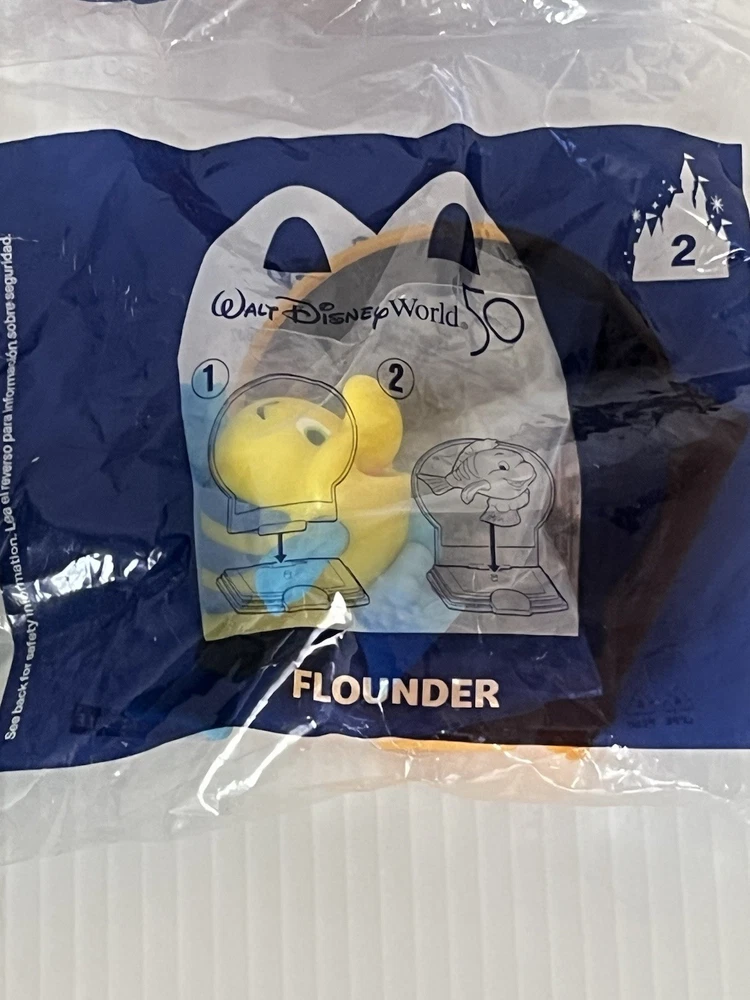 Lot of 6 assorted 2021 McDonald’s Happy Meal / Walt Disney World 50th Anniversary figures new in package Packaging has shelf wear #2 FLOUNDER #20 LUMIERE #44 Celebration DONALD DUCK #45 PINOCCHIO #48 Celebration CHIP #49 NEMO