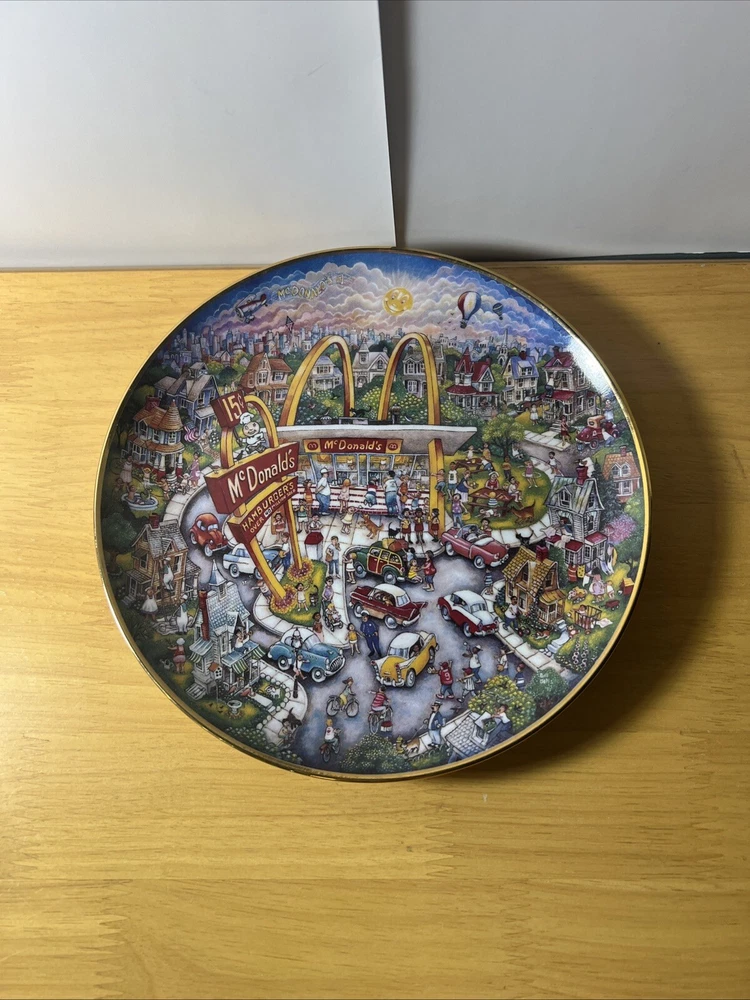 This collector plate by Bill Bell features a beautiful multicolor design on fine porcelain, commemorating special times with a vintage touch. The plate is part of the McDonald's Golden Moments collection, produced in the late 20th century using art pottery techniques. It's a perfect addition to any decorative collection, celebrating American culture and history. The plate is made in the United States and is part of the Early American Prescut/EAPC product line.