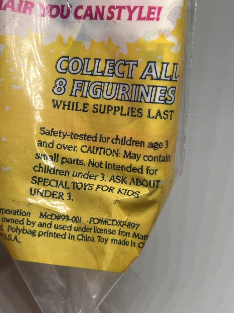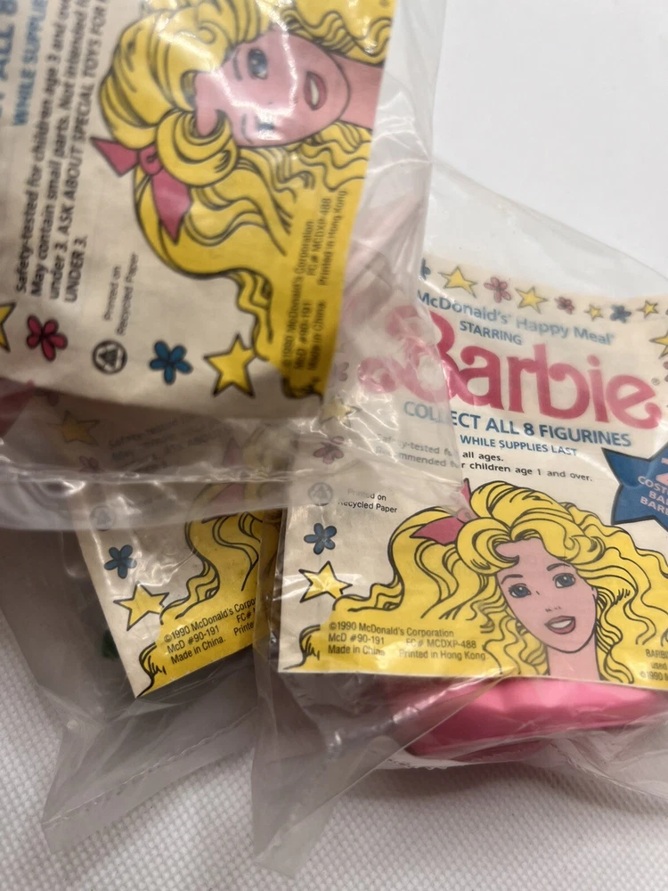 Vintage 1990’s McDonald's Barbie Happy Meal Toy Lot of 4 NOS. Mixed lot in package. Their is slight wear the packing bag; shown in photos! They make great cake toppers! Thank you for stopping by!