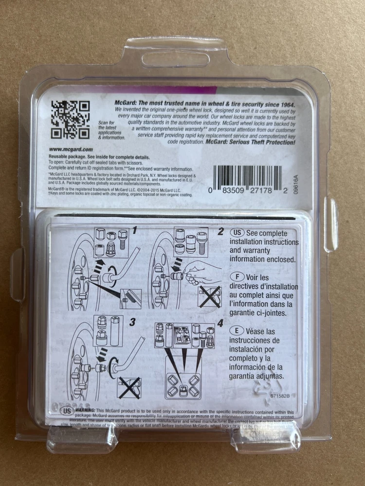 McGard 27178 Chrome Bolt Style Cone Seat Wheel Locks – Set (M12 x 1.5 Thread Size) Upgrade your vehicle’s wheel security and style with the McGard 27178 Chrome Bolt Style Cone Seat Wheel Locks. Engineered for superior anti-theft protection, this set offers a robust and reliable solution designed to deter unauthorized wheel removal while enhancing your ride's aesthetic appeal. Key Features: Premium McGard Quality: Manufactured by McGard, a trusted leader in automotive security, ensuring durability and long-lasting performance. Precise Fit: Designed for wheels with an M12 x 1.5 thread size, providing a secure, snug fit that’s easy to install. Innovative Design: The bolt style combined with a cone seat design creates a unique locking mechanism that significantly hinders unauthorized removal. Sleek Chrome Finish: The high-gloss chrome finish not only enhances your vehicle’s appearance but also offers excellent resistance to corrosion and wear. Complete Set: Replace your standard wheel nuts with this complete set, making it a straightforward upgrade for enhanced wheel security. Why Choose McGard 27178 Wheel Locks? Enhanced Security: Enjoy peace of mind knowing your wheels are protected by a design engineered to deter theft. Effortless Installation: A hassle-free upgrade that allows you to quickly replace standard wheel nuts without compromising security. Stylish Addition: The modern chrome finish adds a refined touch to your vehicle, combining functionality with sophisticated style. Invest in the McGard 27178 Chrome Bolt Style Cone Seat Wheel Locks today and drive with confidence, knowing your wheels are secured by quality you can trust! Feel free to contact us with any questions or request additional photos. Thank you for considering our listing, and happy bidding!