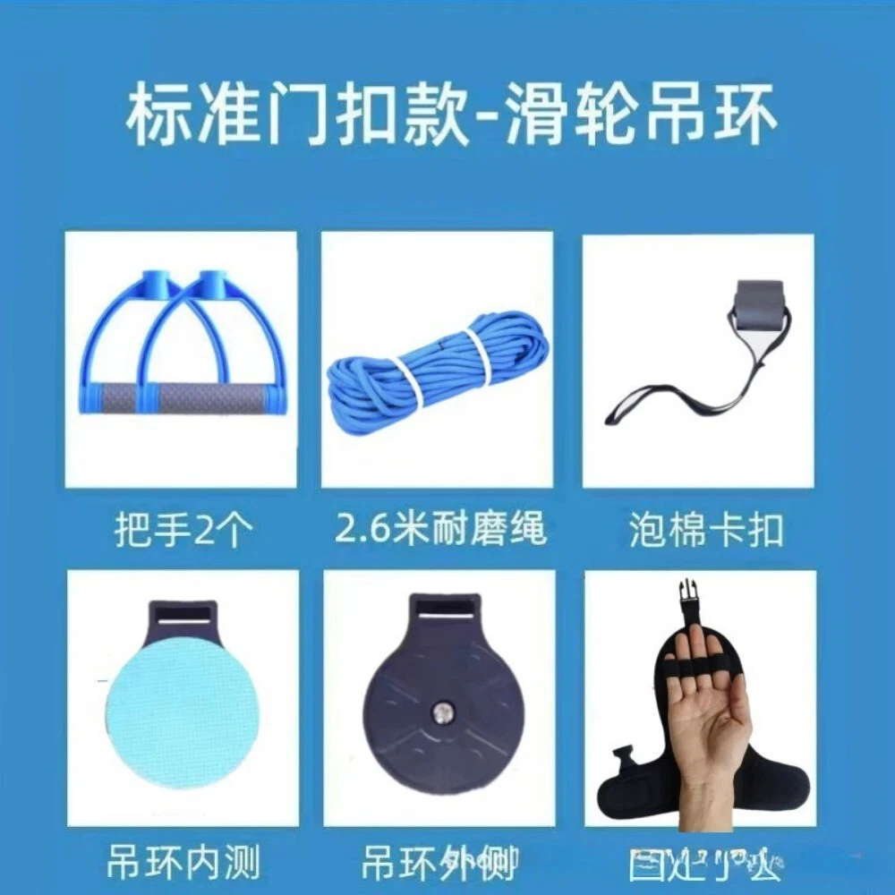 Medical Shoulder Joint Exercise Brace Support Pulley Ring Elderly Stroke Hemiplegia Upper Limb Rehabilitation Train Sports Ropes Recommended users: (1) upper limb rehabilitation training (2) upper body flexibility training (3) Rehabilitation training for the elderly (4) home exercise routine HOW TO USE -Step 1: Place the pulley on the side of the elastic foam pad facing the door -Step 2: Thread the webbing with the foam buckle through the top of the door -Step 3: Close the door and fix it for use Product Included: Handle*2, Rope*1, Buckle*1, Ring*1