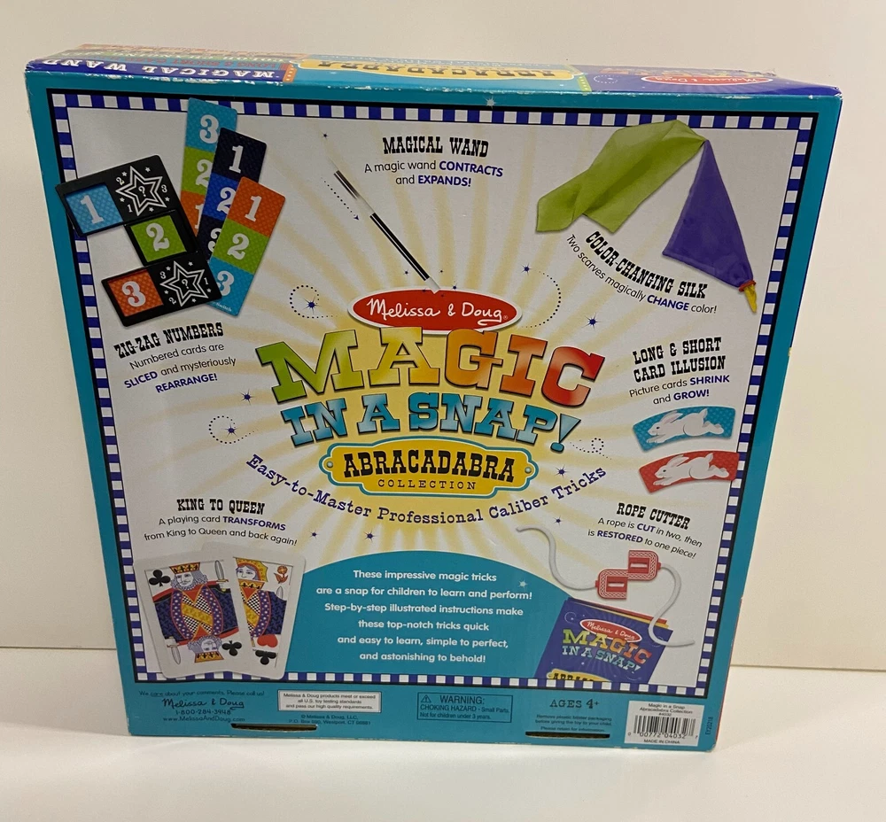 Melissa & Doug Magic in a Snap! Easy-to-Master Professional Caliber Tricks. It have some damage to the box, but otherwise everything is in good condition.
