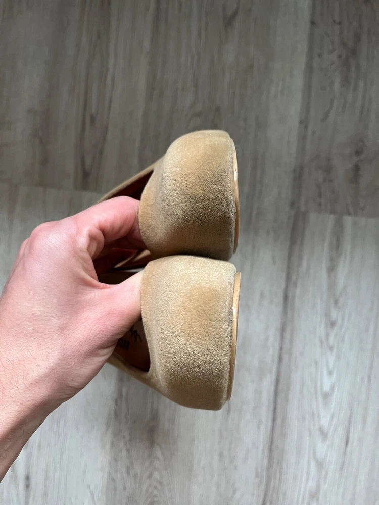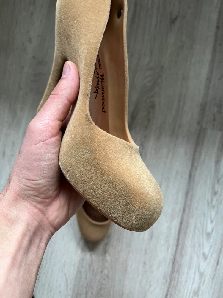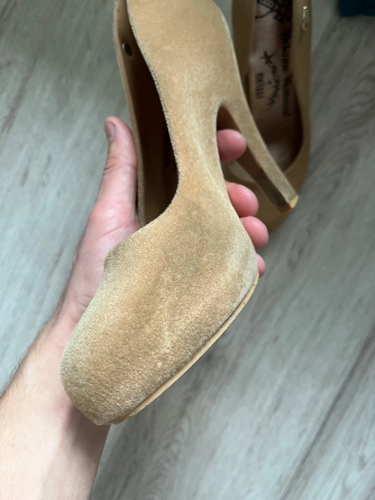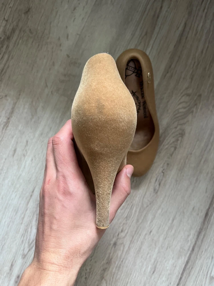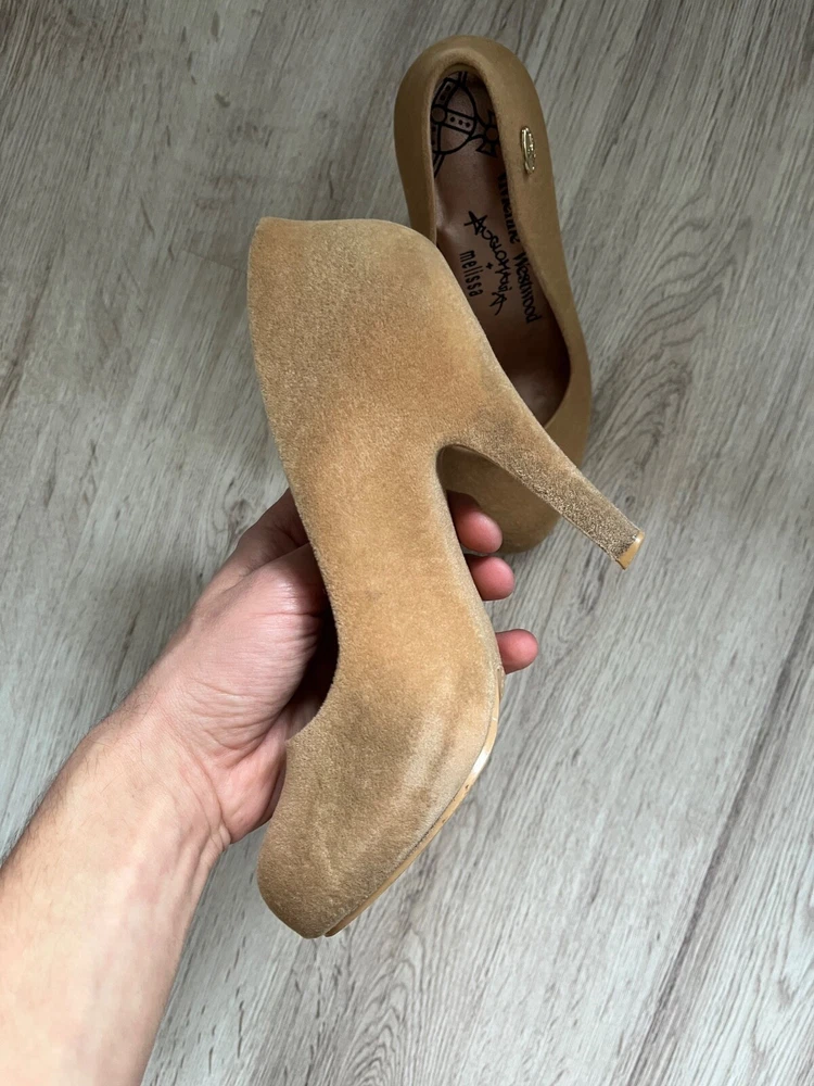 Elevate your shoe game with these stunning Vivienne Westwood flats. The melissa velvet effect rubber shoes in a beautiful beige color are perfect for any occasion. These women's shoes are made with high-quality materials and are designed to provide comfort and style. The shoes are a US size 7 and are perfect for those who love flats. Add these shoes to your collection today and step out in style.