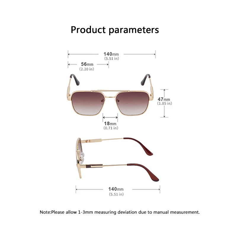 Description Brand: FELRES Frame Material : Metal Lens Material: Plastic Anti-UV rating: UV400 Whether polarized : No Gender: Men/Women Lens Width : about 56 mm Lens height: about 47 mm Bridge: about 18 mm Frame Width: about 140 mm Temple Length : about 140 mm Package included: 1* Sunglasses(Not include boxes and other accessories) Note: 1. Due to the different monitor and light effect, the actual color of the item might be slightly different from the color showed on the pictures. Thank you! 2. Please allow 1-3mm measuring deviation due to manual measurement. Payment Shipping Address About Item Shipping Contact us Payment We accept payment through Paypal ONLY.which is both safe and efficient and it is also the only online payment method We ship to your eBay or Paypal address. Please make sure your eBay and Paypal address is correct before you pay. IF you do not have Paypal account, please registered with. Please be notified that if we do not receive your payment within 1 week, we’ll send a request to eBay Resolution Center to cancel this deal as an “Unpaid Bidding” case which may heavily affect both of our credits. Customs Duties& Taxes Import duties, taxes and charges are not included in the item price or shipping charges. These charges are the buyer's responsibility. Please check with your country's customs office to determine what these additional costs will be prior to biddingying. These charges are normally collected by the delivering freight (shipping) company or when you pick the item up – do not confuse them for additional shipping charges. Shipping Address We ship to your eBay or Paypal address. Please make sure your eBay and Paypal address is correct before you pay. Items will be shipped within 1-5 business day when we received payment. Delivery time depends on destination and other factors; About Item Please send us an ebay information if you wish to change shipping address. All items sold by us are being described to the best of our abilities, as accurate as possible, and with utmost conscientiousness on our part. However, to avoid any potential oversights, I respectfully request your assistance in helping us to make this a mutually satisfactory transaction by THOROUGHLY reviewing item description and photos, and asking all questions PRIOR TO BIDDING. We provide native-speaking customer service in English . Please Note that size and color representation are subject to manufacturing variance and may not be exact. Also note that monitor settings may vary from computer to computer and may distort actual colors. Please read these terms thoroughly before placing your bid. Shipping The items will be shipped by Air Mail, which usually takes 15-30 business days to USA, Canada,Europe, Australia by economic delivery.And ,it will takes longer (20-50 working days) to Russia and Brazil. If you want to be more fast,please select faster shipping way,it could have arrived within 15 days . Shipping may influenced by holidays, events and other uncertainties. We could not guarantee the arrival time.If you dislike the seemingly long shipping time, please think twice before bidding. We do not want to because of shipping time. Get a negative or neutral or low star rating. Contact us Do not hesitate to contact us anytime before and after In case you received a defective item,received a wrong item, there be occasion when you receive items that are different from the description.In such case,contact us immediately so we may remedy the situation. Your satisfaction is important to us and we value your business.Bid With Confidence! Brand FELRES MPN Does Not Apply Model SL-H2403 Type Sunglasses Frame Material Metal Lens Material Plastic Department Unisex Adults Style Square Country/Region of Manufacture China Lens Width 56 mm Lens height 47 mm Bridge 18 mm Frame Width 140 mm Temple Length 140 mm UV Protection UV400 Features Full Frame Lens Technology Anti-Reflective Personalized No Theme Classic, Designer, Outdoor, Retro Frame Color Multicolor