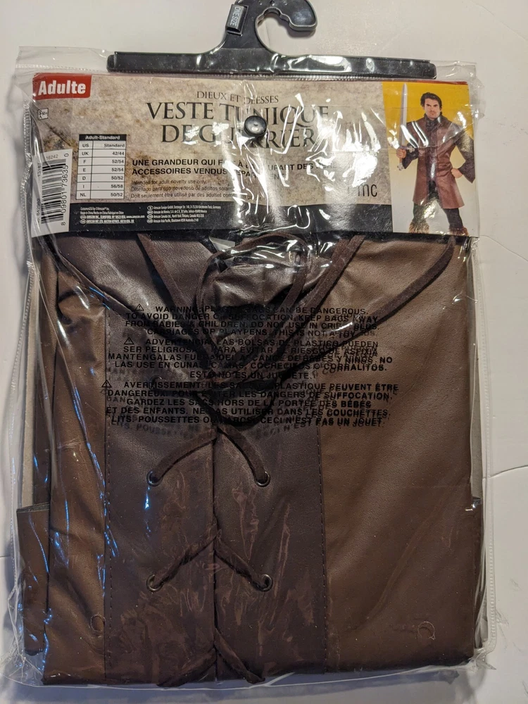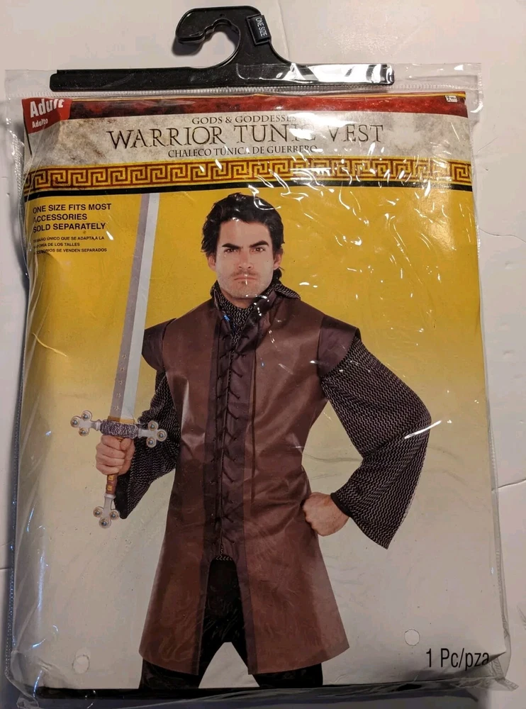 Gods & Goddesses Brown Warrior Tunic Vest. - Brand NEW in original packaging. - Includes only the best (no shirt). - Made of 70% polyurethane foam, 30% polyester. - Great for warrior, renaissance, God of war, game of thrones, steampunk costumes. - Comes from a smoke and pet free home. ** NO RETURNS on costumes or accessories.
