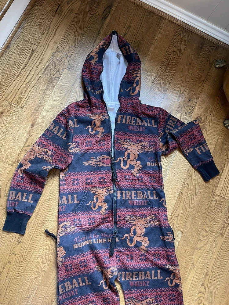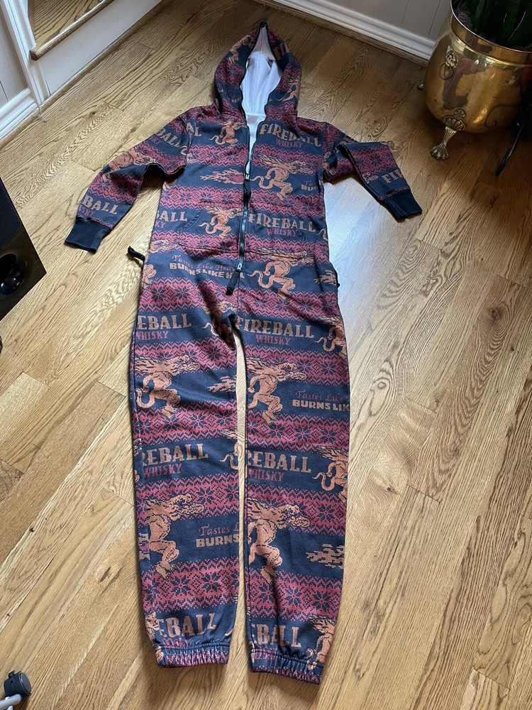 Mens Fireball Whisky One Piece Unitard Pajama Unionsuit Unisex Sz M Frat Party