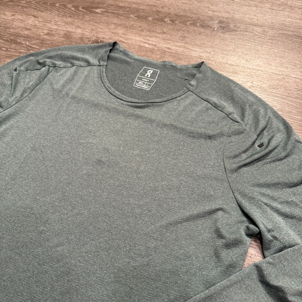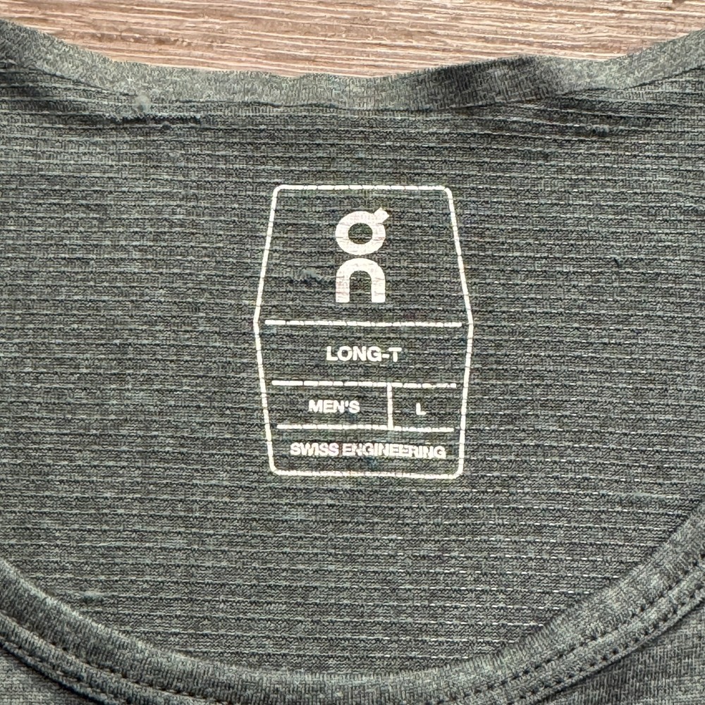 Features: Lightweight, Moisture Wicking, Stretch Style: Basic Performance/Activity: Running & Jogging Pattern: Solid Sleeve Length: Long Sleeve Brand: On Collar Style: Band Fabric Wash: Medium Vintage: No Fit: Regular Size: L Type: T-Shirt Closure: Pullover Accents: Logo Country/Region of Manufacture: Vietnam Department: Men Occasion: Activewear, Casual Size Type: Regular Color: Gray Fabric Type: Knit Material: Cotton, Polyester, Spandex Sleeve Type: Classic/Fitted Sleeve Neckline: Crew Neck Garment Care: Machine Washable