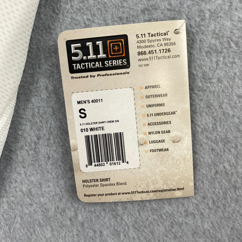Brand: 5.11 Tactical Country/Region of Manufacture: Unknown Gender: Men Size Type: Regular Type: Shirt Size: S Color: White UPC: Does not apply Material: Polyester gtin13: Does not apply