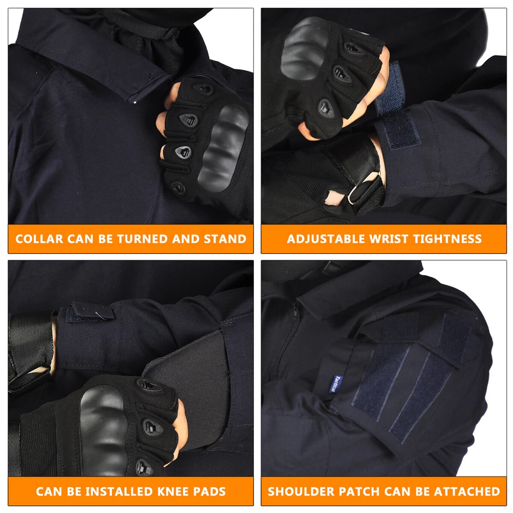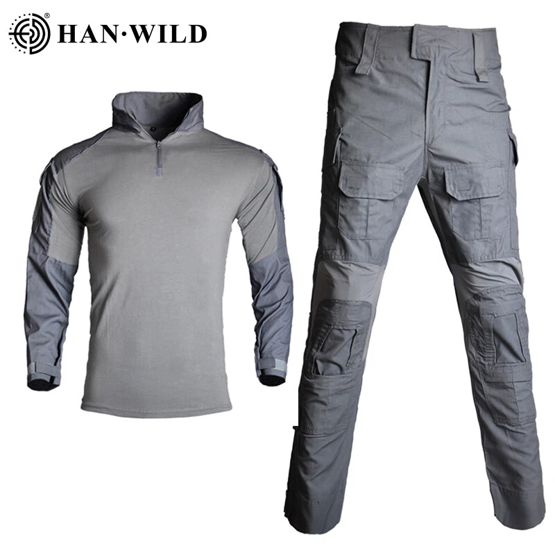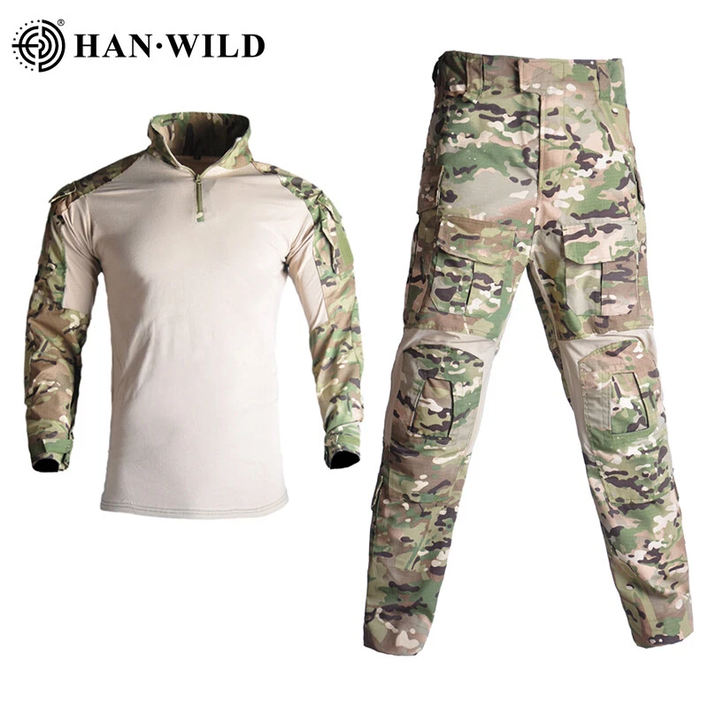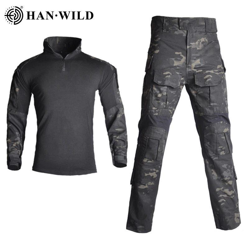 Mens Tactical Suits Combat Shirts Cargo Pants Work Military Outdoor Uniform Suit Mens Tactical Suits Combat Shirts Cargo Pants Work Military Outdoor Uniform Suit Material: 1. Shirt: Camouflage part: 65% Polyester + 35% Cotton Body part: 97% Cotton + 3% Spandex 2. Pants: 60% Cotton + 40% Polyester + Teflon waterproof layer Features: Shirts: 1:totally 4 pockets on arms 2:Smooth zipper with YKK 3:Soft material and perfect stitching 4:adjustable cuff with Velcro 5:Double layer fabric for Elbow,more wear-resistant Pants: 1. Left small pocket can contain lighter and edc tools 2. Multi pocket design with large capacity pocket 3. 3D cutting knee position 4. Waist with rubber band which can adjust range 5. Side pants loop can suspend small objects 6. YKK zipper 7. Folded design at the back waist and knees 8.Adjustable knees/waist/hem with Drawstring or Velcro Size: SHIRT SIZE Size Length Bust Cuff Sleeve Height Weight S 71cm 27.9" 97cm 38.1" 33cm 12.9" 78cm 30.7" 160-165cm 60-65kg M 72cm 28.3" 101cm 39.7" 34cm 13.3" 79.5cm 31.2" 165-170cm 65-75kg L 73cm 28.7" 105cm 40.3" 35cm 13.7" 81cm 31.8" 170-175cm 75-80kg XL 74cm 29.1" 109cm 42.9" 36cm 14.1" 82.5cm 32.4" 175-180cm 80-85kg 2XL 75cm 29.5" 113cm 44.4" 37cm 14.5" 84cm 33.0" 180-185cm 80-90kg 3XL 76cm 29.9" 117cm 46.0" 38cm 14.9" 85.5cm 33.6" 185-190cm 90-95kg Size Error: 1-2CM / 1" error as size was measured by hand. The height and weight is only for reference. PANTS SIZE Size Length Waist Hip Cuff Height Weight S 104cm 40.9" 82cm 32.2" 102cm 40.1" 19cm 7.48" 155-164cm 45-55kg M 106cm 41.7" 86cm 33.8" 106cm 41.7" 20cm 7.87" 164-174cm 55-65kg L 108cm 42.5" 90cm 35.4" 110cm 43.3" 21cm 8.26" 170-178cm 60-70kg XL 110cm 43.3" 94cm 37.0" 114cm 44.8" 22cm 8.66" 178-185cm 70-80kg 2XL 112cm 44.0" 98cm 38.5" 118cm 46.4" 23cm 9.05" 185-192cm 80-90kg 3XL 114cm 44.8" 102cm 40.1" 122cm 48.0" 24cm 9.44" 192-197cm 90-100kg Size Error: 1-2CM / 1" error as size was measured by hand. The height and weight is only for reference. Note: Size Error: 1-2CM / 1" error as size was measured by hand. The height and weight is only for reference. Shipping: We offer free shipping We ship worldwide. Items will be shipped within 1-2 business day Returns: Once you receive your eBay parcel, if you’re satisfied with it (which we’re sure you will be), then great – be sure to leave us some feedback! All items can be returned within 30 days of receipt. Please make sure this is the item you want before you buy. Customer satisfaction is our top priority. If you want to return product, Please send messageto us firslty. We will try our best to solve your question after received your message. Payment Delivery details Returns About us Contact us Payment We Accept PayPal For All Orders. Paypal accepts most methods of payments. Below are methods of payments that you may use threw paypal to pay for the order. • PayPal Balance • Instant transfer from your bank account (if eligible) • PayPal Credit (Bill Me Later, PayPal Extras Card, or PayPal Smart Connect) • Debit card • Credit card Delivery details • We offer free shipping. • Most shipments are sent out within 1-2 business day after payment cleared. • Please make sure You have provide a correct shipping address and Zip Code when you placing order, orders will be shipped out to the shipping address provided by eBay. (Orders are not able to be modified once order has been finalized and synced to our system. Customers may request to cancel order if incorrect address was provided. Once tracking information has been provided, we can no longer cancel or stop shipment.) • Shipping time by eBay is estimated and not guaranteed and is subject to change especially during peak periods. Returns All items can be returned within 30 days of receipt. About us Our company has a history of nearly 20 years. We are a factory,so we can provide best HAN-WILD outdoor products with best price. Have a good time. Contact us You can contact us anytime by ebay message. we will replied you within 24 business hours. Brand Han-Wild Pattern Camouflage Size Type Regular Type Jacket & Pants Set Size S,M,L,XL,2XL,3XL Material Cotton, Polyester Gender Unisex Adults Country/Region of Manufacture China