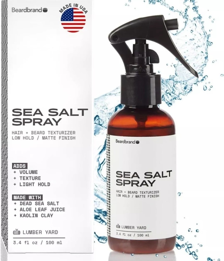 Beardbrand LUMBER YARD Sea Salt Spray 3.4 fl.oz / 100 ml NEW ABOUT THIS ITEM: TEXTURIZING SEA SALT SPRAY - Ideal for oily to average hair types, the leave-in styling mist is formulated with sea salt, which helps give hair a beautifully messy texture and hold while adding shine VOLUME & FULLNESS - Salt adds incredible volume and texturizes hair for a beach or surfer hair style. It also adds amazing richness and fullness to thinning or fine hair INSPIRED BY NATURE - Infused with kaolinite clay, to mimic the grit of beach sand, giving hair a natural boost while removing toxins and excess oil. The warm and woody scent of this hair-styling mist leaves locks smelling irresistibly good INVIGORATING SCENT - The cedarwood and sandalwood scent is subtle and not overpowering, making it ideal for those who prefer a more understated fragrance Sea Salt Spray for Men – Hair Texture Spray Adds Instant Volume, Texture & Thickness, Lightweight Hair Salt Spray for Natural, Textured Look, Lumber Yard Scent, Achieve Effortless Style & All-Day Hold