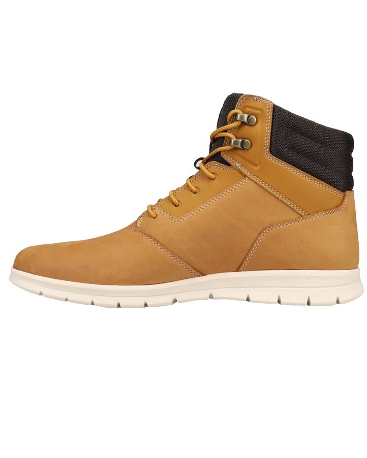 Elevate your hiking and trail experience with the Mens Timberland GRAYDON Sneaker Boot. This boot boasts a round toe shape, lace-up closure, and a wheat color that exudes sophistication. The upper is made of high-quality full-grain leather that guarantees durability and comfort. The boot also features an ortholite insole material that adds to its comfort and support. The outsole is made of rubber, making it slip-resistant and perfect for any terrain. With a UK shoe size of 8.5, US shoe size of 8, and EU shoe size of 38, this boot is perfect for men who want to explore the great outdoors. The Timberland brand assures you of quality and style that will last for years.