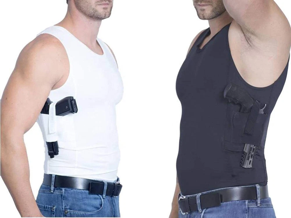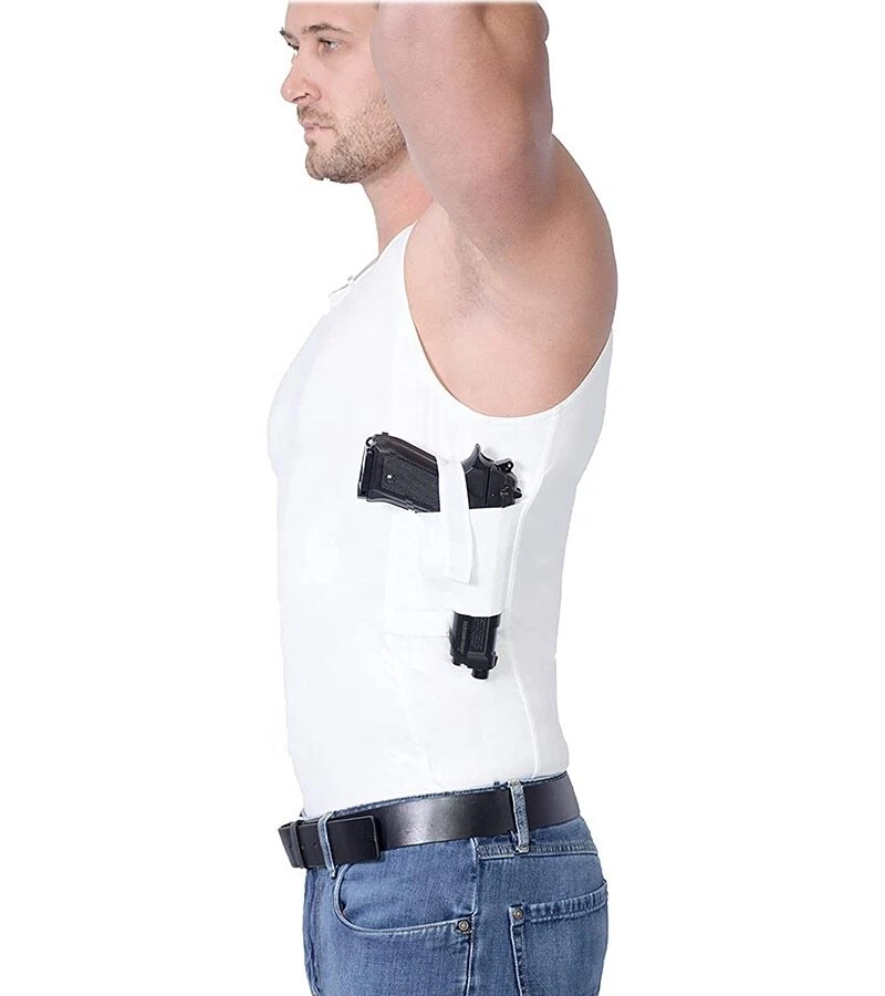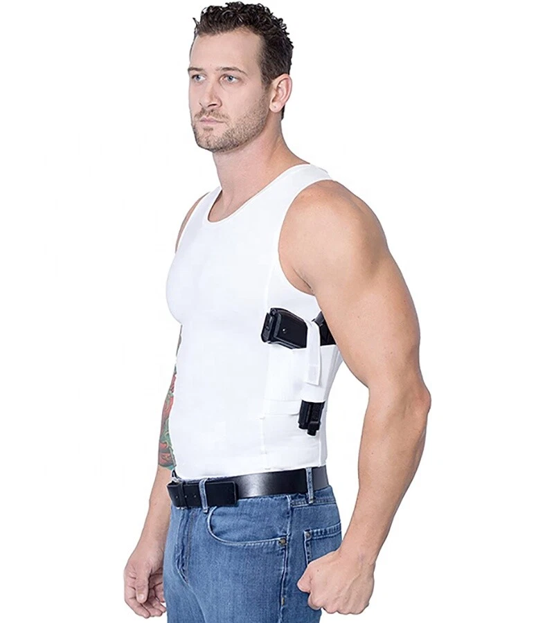 Men's Top Holster T-Shirt Concealed Carry Tank Clothing Wear Vest For Carry Item Description Tumble dry EASY-WEAR MATERIAL: Made with moisture-wicking and anti-odor compression fabrics that will keep you cool and dry all year round. COMFORTABLE: Made from a perfect blend of 88% Polyester and 12% Spandex. The soft material won't irritate your skin. EASY-ACCESS HOLSTERS: Features two holsters to carry and conceal up to two handguns at a time for left or right handed shooters. Also has pockets for spare magazines, cell phone, MP3 player, or handcuffs. VERSATILE: Worn by police officers, hunters, military personnel, Secret Service, security professionals and everyday heros who conceal carry in all seasons. SIZES: Chest size measured in inches: Medium: 37-41, Large: 41-44, XL: 44-48, 2XL: 48-53, 3XL: 53-58, 4XL: 58-62, 5XL: 62-66 Fit : Fits true to size, take your normal size Tips Please check the user manual carefully. If you have any questions please contact us. Please DO NOT Leave A Negative or Neutral Feedback Before Contacting Us. Thank you for your support and Understanding. Payment Safe Payment Via PayPal. Shipping Free Worldwide Shipping. Please Don't hesitate to contact us anytime through email with any question you might have, we will reply within 24 hours. Return 60 Day's Returns. We are committed to your 100% satisfaction. Visit My Store