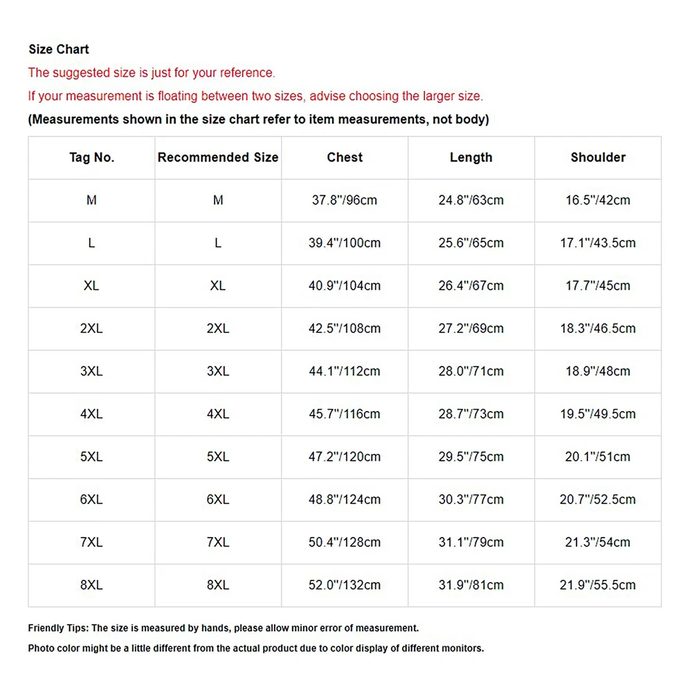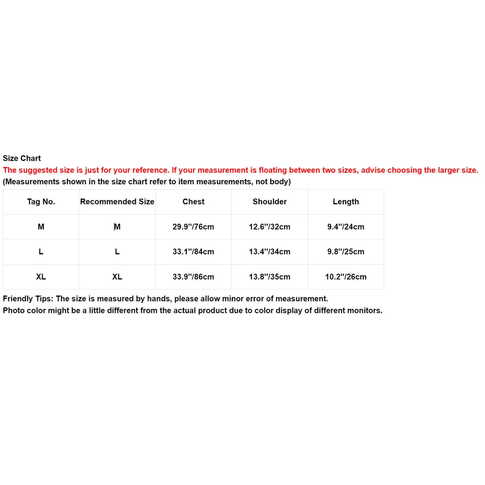 Our store Shipping Payment Click Here to New Arrivals New Arrivals Hot Sale On Sale Baby Supply Girs Dress Girs Outfit&Sets Girs Hoody Outwear Girs Fancy Costume Girs Leggings Girs Swimwear Girs Tops T-Shirts Womens Fashion Men Crop Top Sleeveless Casual Round Neck Sports Workout Running Vest Club-wear Price for all: 6.69 Buy It Now Mens Mock Turtleneck Knit Pullover Sweater Short Sleeve Slim Fit Tops Undershirt Price for all: 9.99 Buy It Now Mens Stylish Print Chef Shirt Short Sleeve Hotel Restaurant Kitchen Costume Price for all: 6.65 Buy It Now Men's T-shirt Casual Slim Fit V Neck Short Sleeve Muscle Workout Tee Top Blouse Set Include : 1x T-shirt Condition : New with tag Material : 65% Polyester, 35% Cotton Features : Made of high quality fabric, soft, breathable, comfy to touch, the tops will give you a comfortable wearing experience. Short sleeve T-shirt for men, v neck, the solid color and plain style for this top for women is simple but not boring. Great to match with jeans, shorts, leather pants or casual pants. A good gift for friends, boyfriend, husband or family members. Suitable for casual daily wear, shopping, club, party, date, sport, workout, holiday, weekend, relaxing or lounging at home. Please check the size clearly before purchasing, machine wash and hand wash recommended, hang dry. Size Chart The suggested size is just for your reference. If your measurement is floating between two sizes, advise choosing the larger size. (Measurements shown in the size chart refer to item measurements, not body) Tag No. Recommended Size Bust Shoulder Sleeve Length S S 40.9’’/104cm 18.1’’/46cm 8.7’’/22cm 26.4’’/67cm M M 43.3’’/110cm 18.9’’/48cm 9.1’’/23cm 27.2’’/69cm L L 45.7’’/116cm 19.7’’/50cm 9.4’’/24cm 28.0’’/71cm XL XL 48.0’’/122cm 20.5’’/52cm 9.8’’/25cm 28.7’’/73cm XXL XXL 50.4’’/128cm 21.3’’/54cm 10.2’’/26cm 29.5’’/75cm Friendly Tips: The size is measured by hands, please allow minor error of measurement. Photo color might be a little different from the actual product due to color display of different monitors. #2 Set Include : 1x Crop Top Condition : New without tag Material : 65% Polyester, 35% Cotton Features : Made of soft fabric, breathable, comfy to touch and wear, makes you feeling well. Short sleeve t-shirt, stylish cropped length, perfectly show your charming muscle. Round neck crop top for men, it can be styled with jeans, hot pants, casual trousers. Great for gym, sports, workout, holiday, beach, club, party, date, street, dance, home etc. Please check the size clearly before purchasing, hand wash cold recommend. Size Chart The suggested size is just for your reference. If your measurement is floating between two sizes, advise choosing the larger size. (Measurements shown in the size chart refer to item measurements, not body) Tag No. Recommended Size Chest Shoulder Length M M 29.9’’/76cm 12.6’’/32cm 9.4’’/24cm L L 33.1’’/84cm 13.4’’/34cm 9.8’’/25cm XL XL 33.9’’/86cm 13.8’’/35cm 10.2’’/26cm Friendly Tips: The size is measured by hands, please allow minor error of measurement. Photo color might be a little different from the actual product due to color display of different monitors. #3 Set Include : 1Pc Men Top Condition : Brand New Material : 100% Polyester Features : The T-shirt is made of high quality material, light weight, skin-friendly fabric, breathable, soft and comfortable to wear, not easy to break, washable and durable, no pilling. Short sleeve and round neckline, simple solid color, sport style striped print in edge, the unique stretchy stretch fabric makes your activities more comfortable and free. Using the honeycomb design principle, the special mesh structure generates natural ventilation holes to achieve high breathability, quick drying and other properties. Please check our size measurement below carefully before you place an order, hand wash cold and hang dry recommended, vibrant and vibrant colors clothes. Suitable for many occasions, for example, sport wear, lounge wear, running wear, outdoor wear, daily life, casual wear, play tennis, hiking, play basketball and so on. Size Chart The suggested size is just for your reference. If your measurement is floating between two sizes, advise choosing the larger size. (Measurements shown in the size chart refer to item measurements, not body) Tag No. Recommended Size Chest Length Shoulder M M 37.8’’/96cm 24.8’’/63cm 16.5’’/42cm L L 39.4’’/100cm 25.6’’/65cm 17.1’’/43.5cm XL XL 40.9’’/104cm 26.4’’/67cm 17.7’’/45cm 2XL 2XL 42.5’’/108cm 27.2’’/69cm 18.3’’/46.5cm 3XL 3XL 44.1’’/112cm 28.0’’/71cm 18.9’’/48cm 4XL 4XL 45.7’’/116cm 28.7’’/73cm 19.5’’/49.5cm 5XL 5XL 47.2’’/120cm 29.5’’/75cm 20.1’’/51cm 6XL 6XL 48.8’’/124cm 30.3’’/77cm 20.7’’/52.5cm 7XL 7XL 50.4’’/128cm 31.1’’/79cm 21.3’’/54cm 8XL 8XL 52.0’’/132cm 31.9’’/81cm 21.9’’/55.5cm Friendly Tips: The size is measured by hands, please allow minor error of measurement. Photo color might be a little different from the actual product due to color display of different monitors. Product names are trademarks of the listed manufacturer or other owners, and are not trademarks of Acc_eShop. The manufacturer does not necessarily endorse use of these products. Payment Methods Terms and Conditions Shipping Combined shipping is limited only to the items listed under this seller account : Acc_eShop All the free shipping item don't offer discount. We REDUCE US$1.00 on shipping cost for each additional item. Please contact us to send you the update invoice once you finish your purchase. Please note that only the item in same currency can be combined.Please note that we do NOT offer shipping discount for bidding orders or item value less than $5.00 International Orders: The buyer is responsible for any applicable import duties and local taxes. P