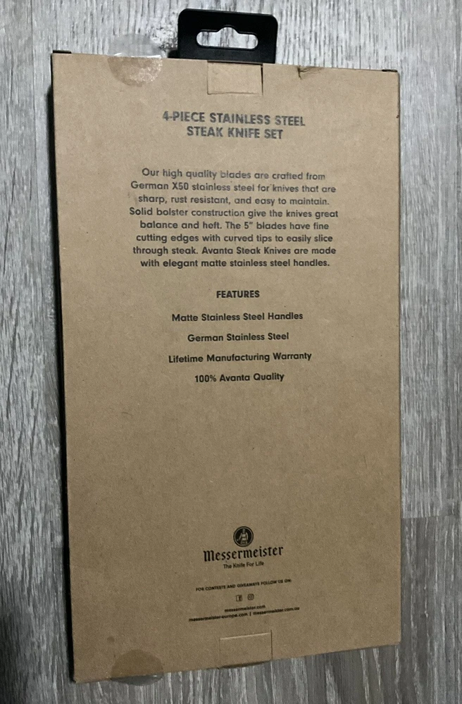 Messermeister Avanta Fine Edge Steak Knife Set, 4-Piece, Stainless Steel