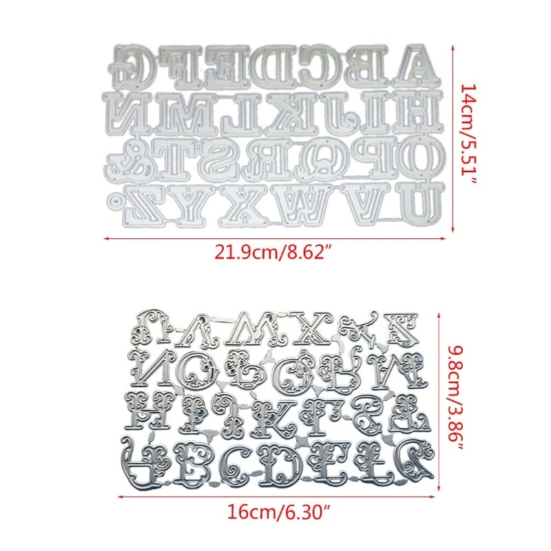 Metal 26 Alphabets Cutting Die for DIY Photo Album Home Decorations Features: and high Carefully polished, the edges are smooth and burr-free, and will not scratch the delicate hands of children, so you can use it with confidence. carbon steel, strong and durable, not easy to break or deform, easy to ,and can be used and stored for a long for time. You can also paint the finished product with your favorite color and your own unique You can use our cutting die to DIY scrapbooks, invitations, Christmas cards, birthday gifts, party decorations, photo album frames, pocket scrapbooks, diaries and home decorations. You will get a 26-letter cutting die, two of cutting die for you to choose, exquisite and unique to meet your card making needs. Specifications: Carbon Steel 1047 1618 Size: 1047:Approx. 16x9.8 for cm/6.30x3.86 in 1618:Approx. 21.9x14 for cm/8.62x5.51 in Package Includes: 1x Letters Cutting Die note: 1.Please allow 1-2cm errors due to manual measurement, make sure that you do not mind before you order. 2.Due to the difference between different monitors, the picture may not reflect the actual color of the item.