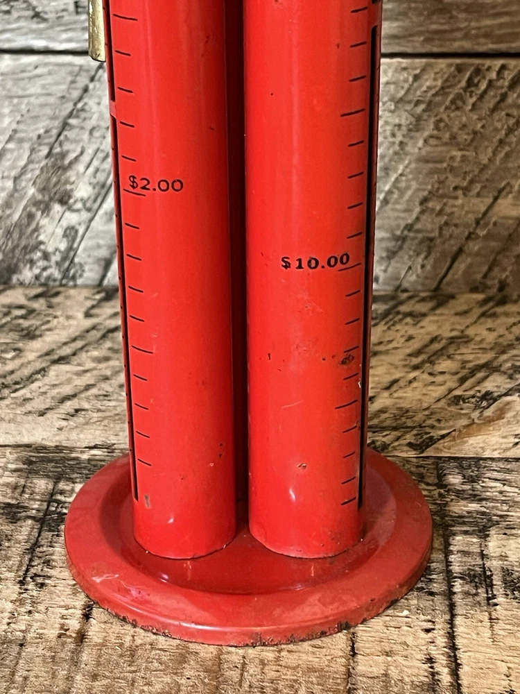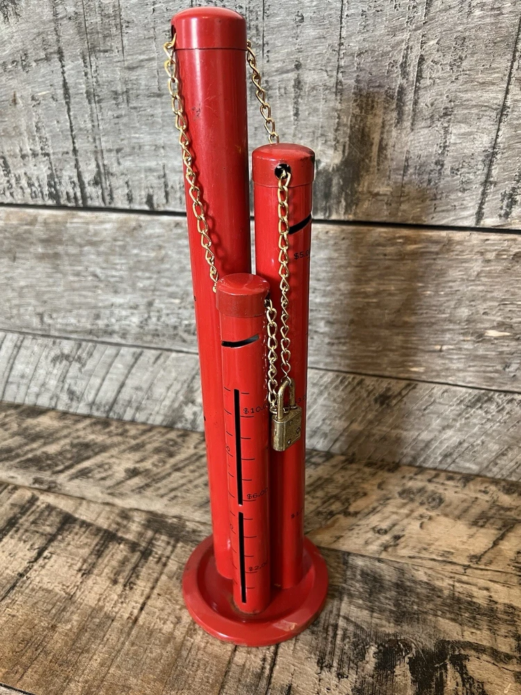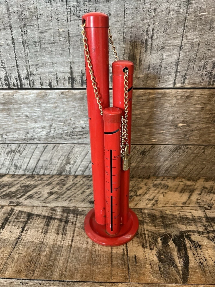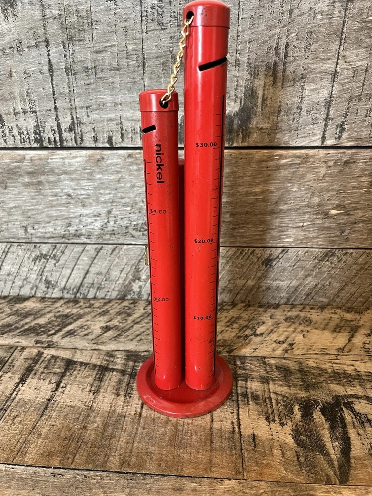 Metal 3 Tower Coin Sorter Triple Tub Bank Quarter Dime Niclel Red. 12 inches tall