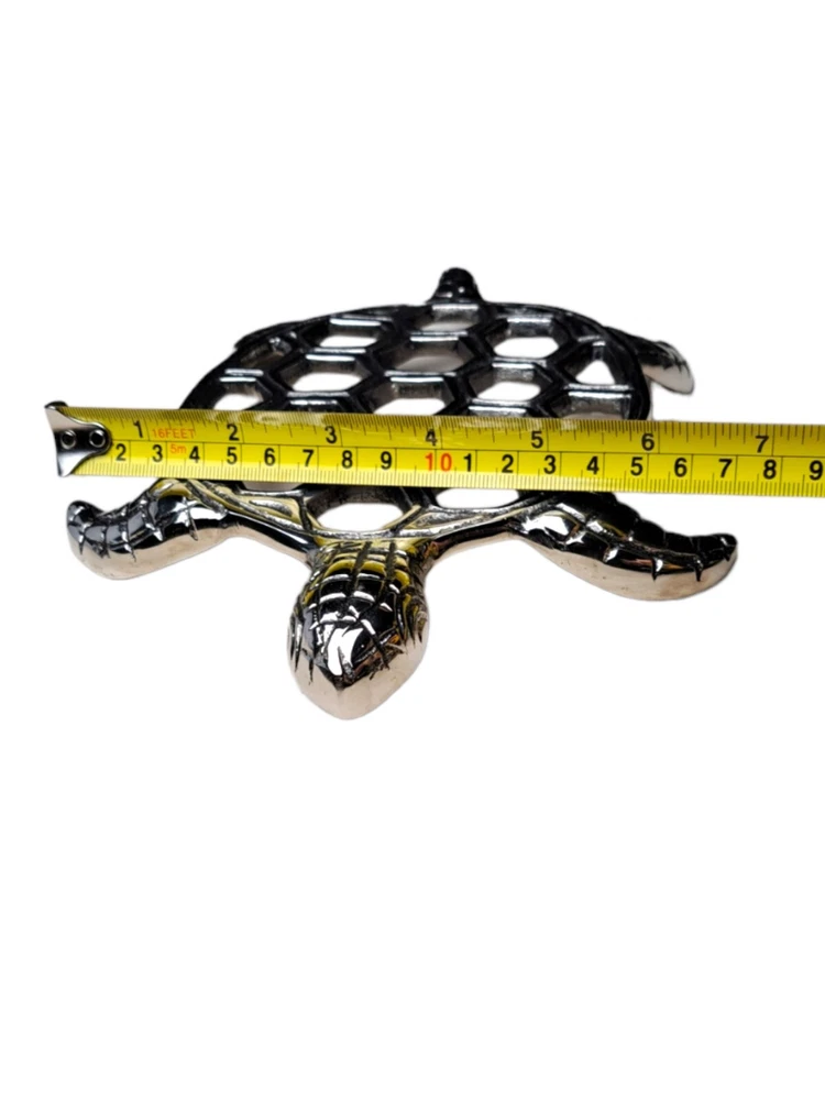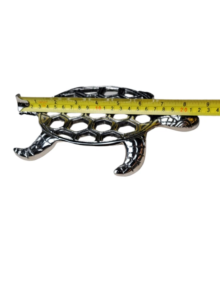 Color:SilverItem Height:2 inItem Weight:9 ozItem Width:7 inPattern:Sea Turtlegtin13:Does not applyFinish:MetallicTheme:ArtCharacter:TurtleUPC:Does not applyMaterial:MetalNumber of Items in Set:1Type:TrivetBrand:Star HomeShape:TurtleItem Length:9 in