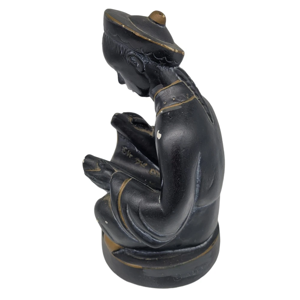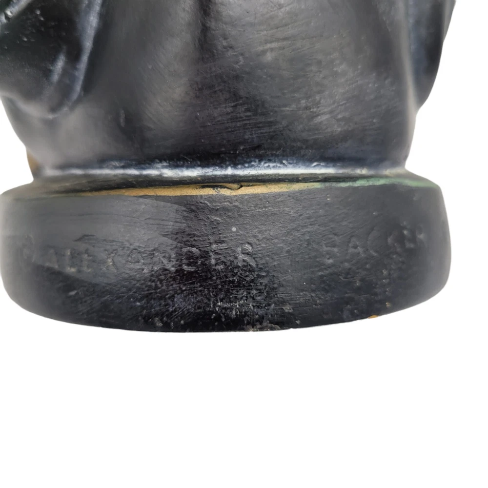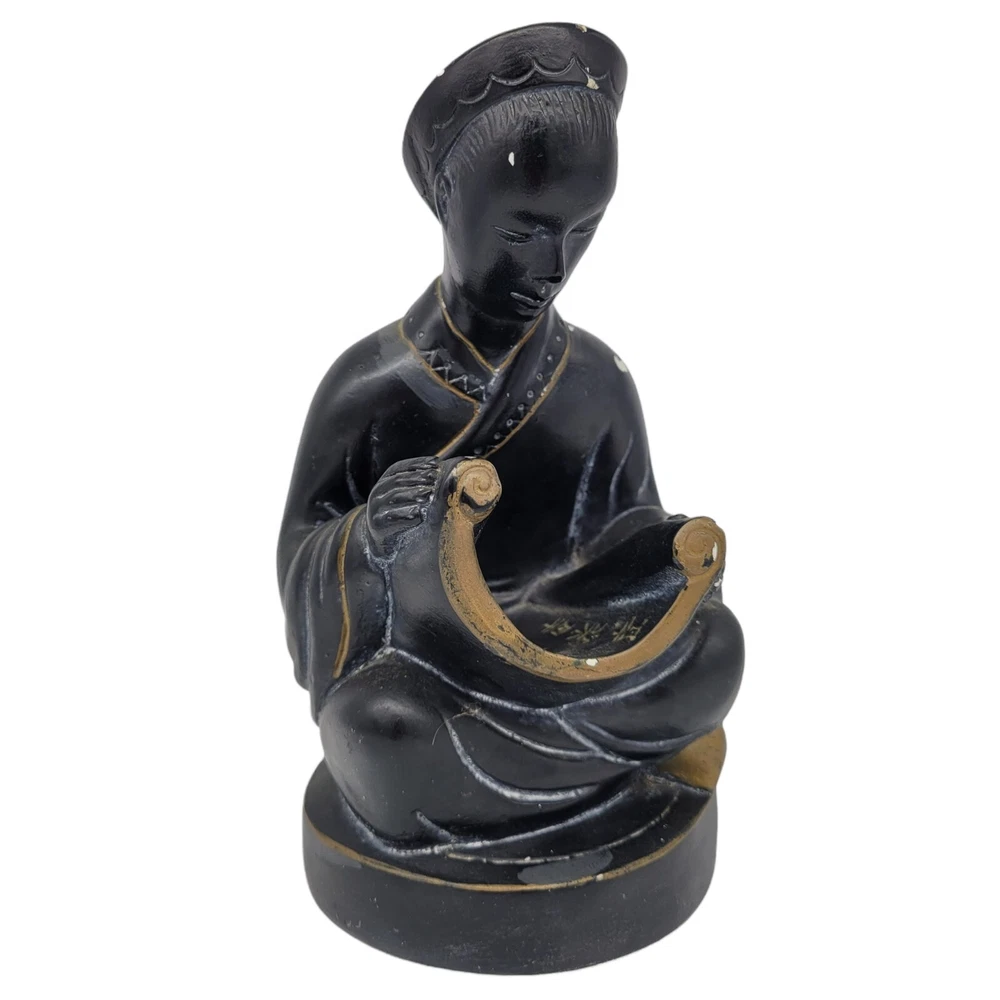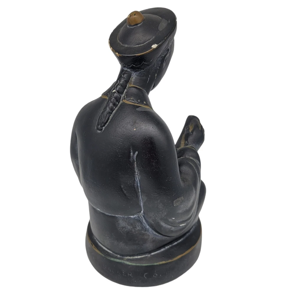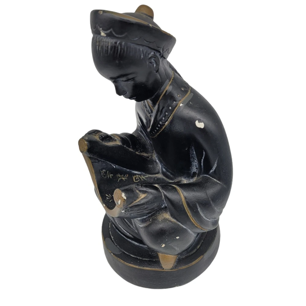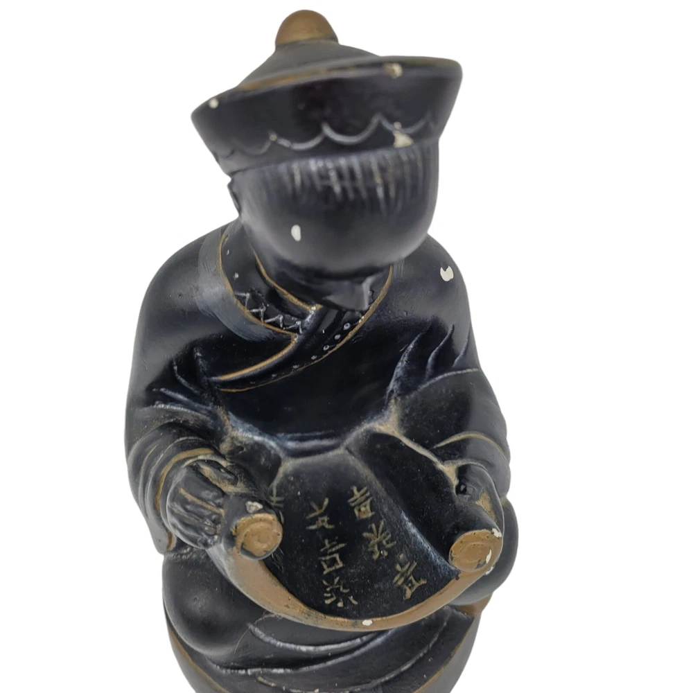 Mid Century Alexander Backer ABCO Ceramic Figurine Asian Man Reading Scroll he does have some chipping on the paint, I was able to find similar ones in red but none like this which is black and gold signed on the back sticker on the bottom measures 8.25" tall and bottom has a diameter of a little over 4.25" He weighs 2lbs 11oz Please use your zoom function to see the chips on paint I have surface dusted but buyer will need to clean more thoroughly Keywords: asian, oriental, collectibles, ceramic, pottery, home decor, mantle piece Will combine shipping on multiple items