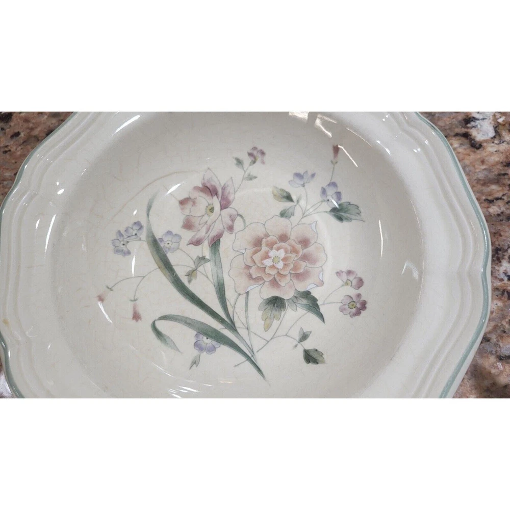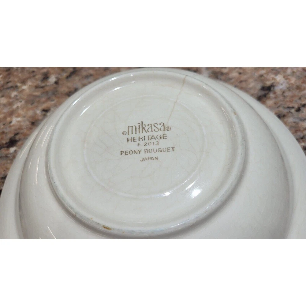 This Mikasa Heritage cereal bowl is a beautiful addition to any collection. The round shape and glossy finish make it perfect for all occasions. The beige color and peony bouquet theme add a touch of elegance to any table setting. Crafted from stoneware, this bowl is oven, microwave, and dishwasher safe. It has a printed backstamp and is an original piece from Japan. The set includes two cereal bowls, perfect for a morning bowl of cereal or a serving of soup. Add this decorative piece to your pottery and glass collection today. There are marks on the bowls consistent with its age. Overall I would say Fair condition... These 2 bowls do have cracks and crazing on them. Details of the cracks / crazing can be seen in the pictures. Please be sure to review the pictures prior to purchase. This pattern is discontinued. Check out my other matching pieces available for purchase separately here on eBay!