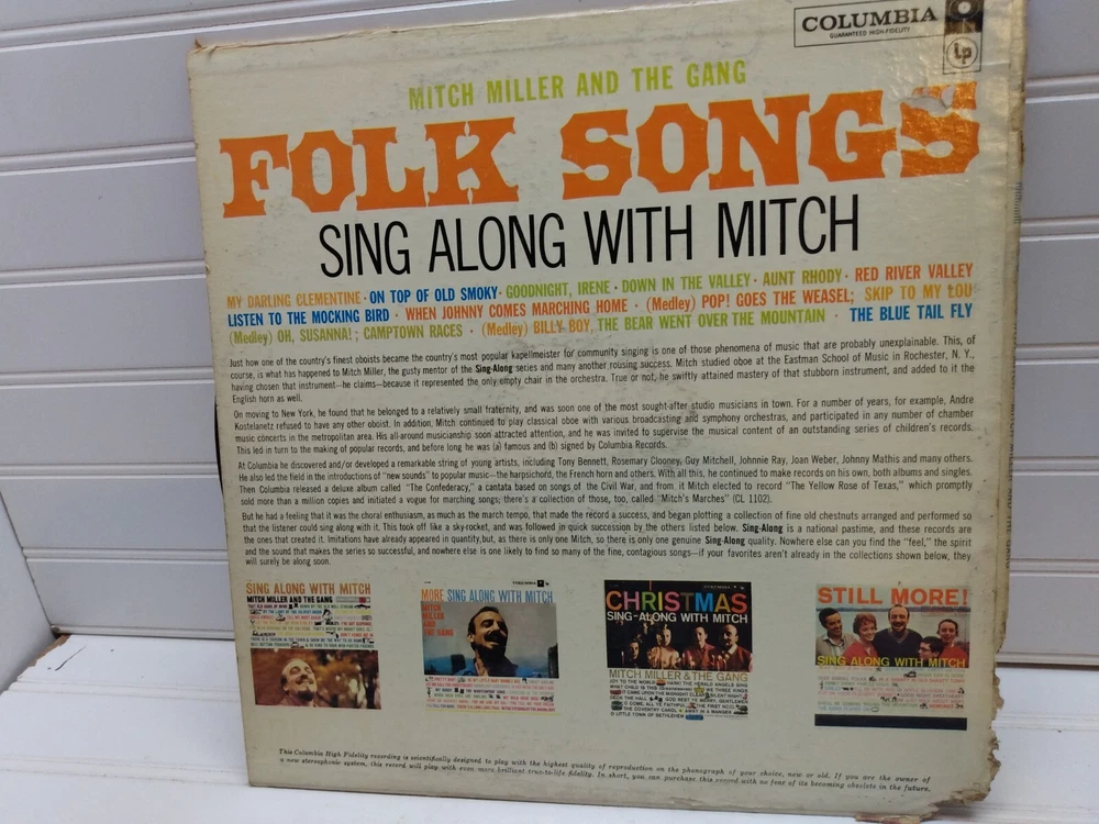 Previously owned in good working condition Mitch Miller Folk Songs Sing Along Album LP Vinyl Music