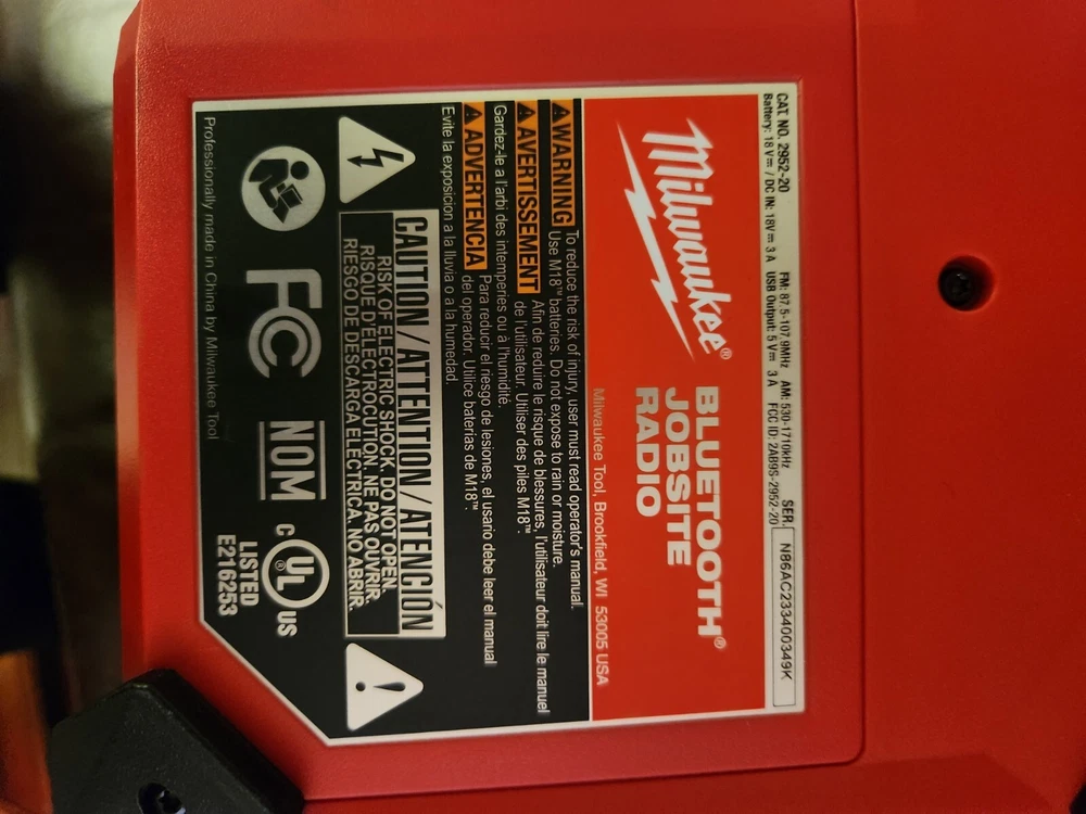 ***USED BUT JUST LIKE NEW**** THIS RADIO IS BASICALLY JUST IN AN OPEN BOX CONDITION. THERES ABSOLUTELY NO SCRATCHES IR MARKS AND THATS WHY I LISTED IT AS BRAND NEW BECAUSRE IT BASICALLY IS. Enjoy your favorite tunes while you work with the Milwaukee 2952-20 M18 Bluetooth Jobsite Radio Bare Tool. This powerful radio boasts a range of up to 250 ft. and features both AM and FM bands. Its rugged design makes it perfect for any jobsite, and the Bluetooth connectivity allows you to stream your music wirelessly. The Milwaukee 2952-20 M18 Bluetooth Jobsite Radio Bare Tool is a must-have for any hardworking professional. With its vibrant red color and durable construction, you can count on it to provide you with the music and information you need to get through your day.