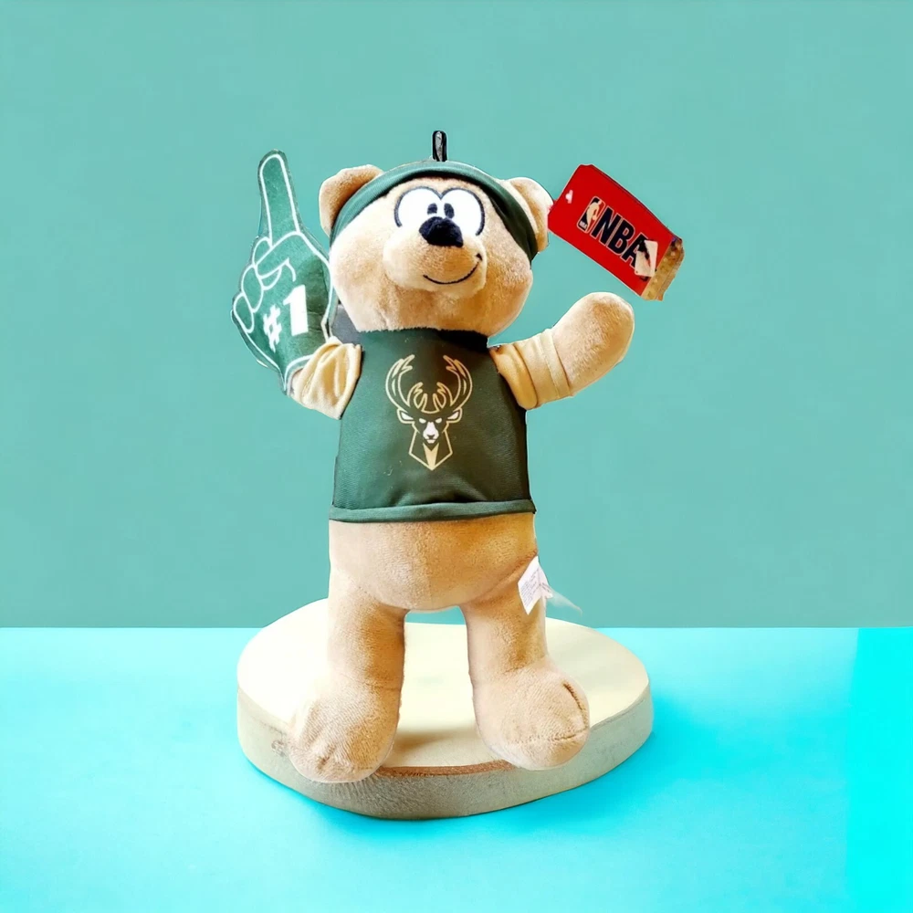 I ALWAYS SHIP NEXT DAY OR SAME DAY SO YOU CAN GET YOUR ITEM FASTER THAT'S INCLUDING WEEKENDS AS WELL I COMBINE AND REIMBURSE ALL COMBINED SHIPPING Cheer on the Milwaukee Bucks with this adorable stuffed plush sports bear! Perfect for any unisex children fan, this 9 inch plush figure is made of high-quality materials and features the team's signature green color. Whether you're a die-hard NBA fan or simply looking for a cute addition to your sports memorabilia collection, this plush bear is a must-have. Represent your favorite team with pride and showcase your love for the National Basketball Association (NBA) with this officially licensed product. Made in China, this plush figure is ideal for any NBA fan, regardless of age or gender. Don't miss out on the opportunity to add this unique product to your collection!