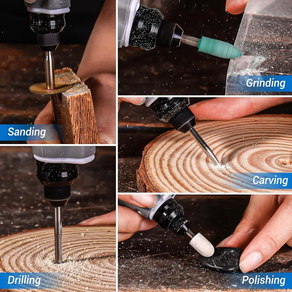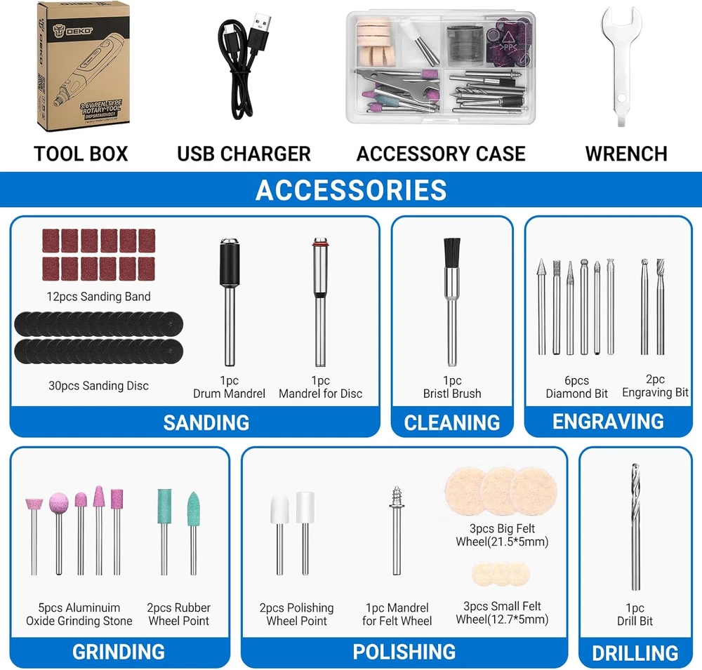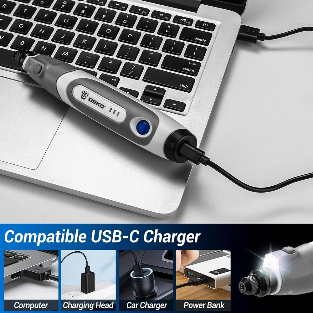 Multifunctional Rotary Tool Kit: Mini Rotary Tool Set with 70 Rotary Tool Accessories Kit offers high-performance and low-noise operation. Ideal for carving, sanding, grinding, polishing, and cutting in fine DIY work, especially for creating resin crafts. It serves as a comprehensive toolbox in one convenient package. Note: Not suitable for heavy-duty projects Variable Speed Adjustment:The Hand Held Engraver Tool, featuring 3-speed settings for 5000/12000/18000RPM RPM, is strong and steady. Whether it's delicate engraving or robust cutting, its adjustable speed range guarantees for project's demands Quick Type-C Charging and Longer Running Time:The cordless Mini Rotary Tool comes with a 3.7V rechargeable battery that can work continuously for 240 minutes. A single charge can be used multiple times, making it stress-free and convenient. Battery-powered Mini Rotary Tool allows you to work for a long time. (The indicator light will turn green when fully charged) SMALL Size and Light Weight: Small size allows you to get closer to your workpiece and provides maximum control in precision etching, Engraving Tools application, polishing and sanding. The weight only has 0.3lb (tool only) Excellent DIY Crafts Maker: This cordless Mini Rotary Tool is perfect for making a special keepsake for family or friends. It's a great gift for DIY lovers in your life, like on Father's Day, Thanksgiving, or birthdays. They'll be really happy with such a thoughtful gift. Also, it's useful when helping your child with a craft. It improves your child's practical skills and strengthens family ties. So, enjoy DIY fun with your loved ones Product Description